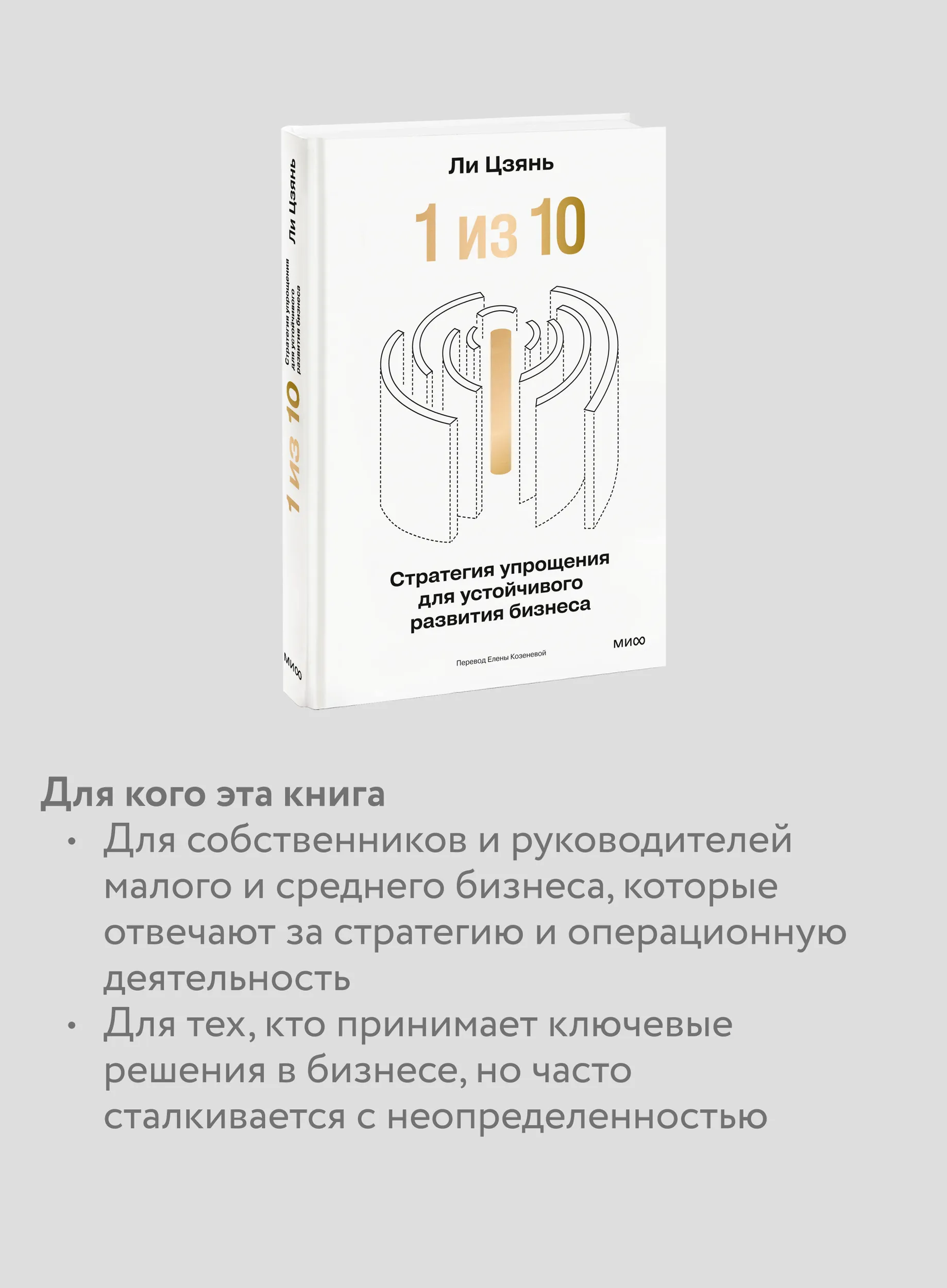 Практичное руководство по предпринимательскому мышлению, основанное на принципе: брать главное и отказываться от лишнего. Ли Цзянь обобщает опыт, который он приобрел, управляя бизнесом 30 лет и занимаясь обучением менеджменту почти 20 лет, в философию управления "выбрать одно и отказаться от девяти".