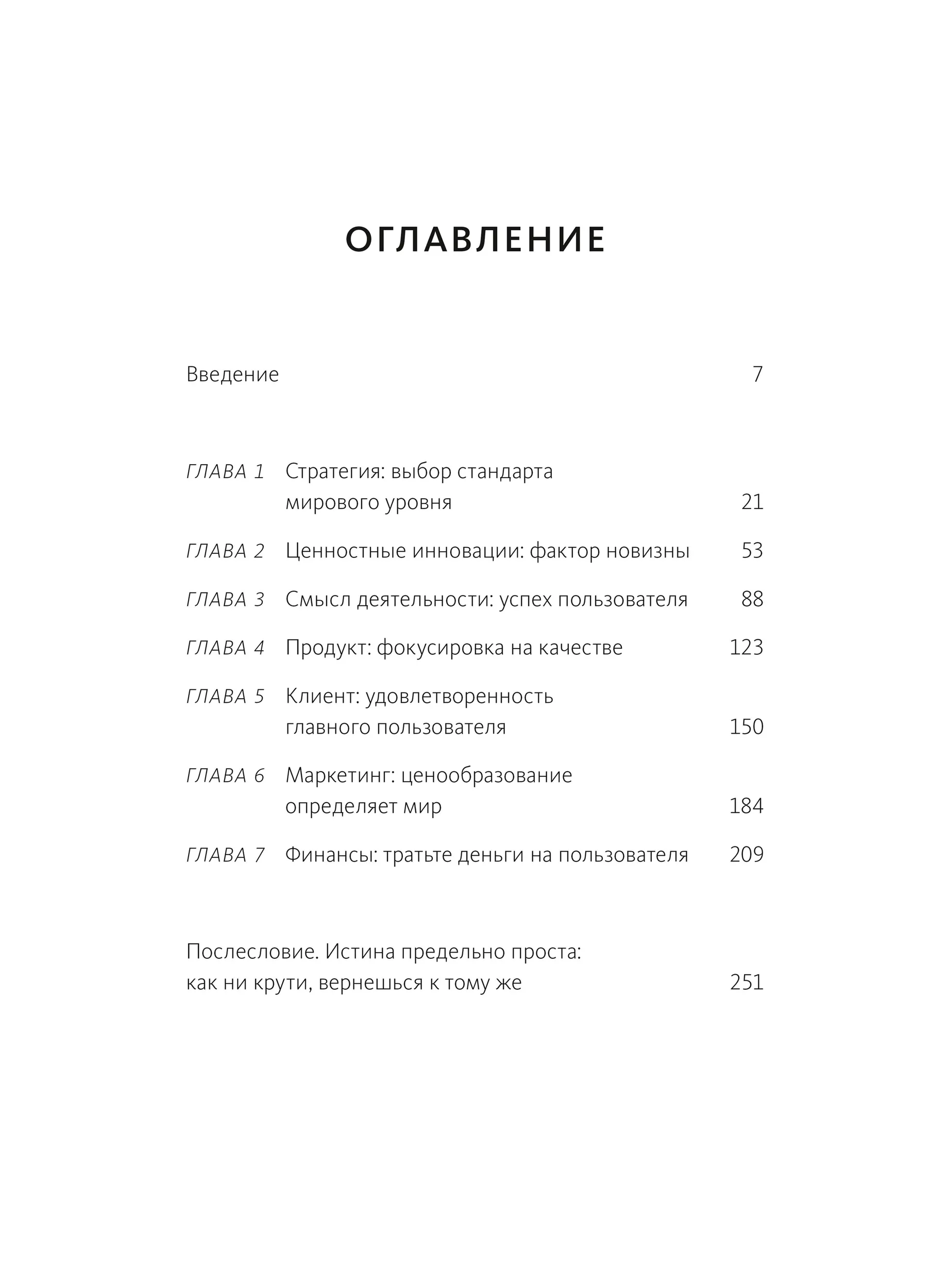 Он доступно объясняет, что сущность всех бизнес-операций состоит из семи аспектов: стратегия, ценность, организация, продукт, пользователь, маркетинг и финансы, и в каждом из них важно на старте выбрать главное и заниматься им, отбрасывая все второстепенное, лишнее, а порой и вредное. Применяя подход "взять одно, отказавшись от девяти", читатели смогут сфокусироваться на главном, освободить время и ресурсы, повысить эффективность бизнеса и минимизировать затраты.