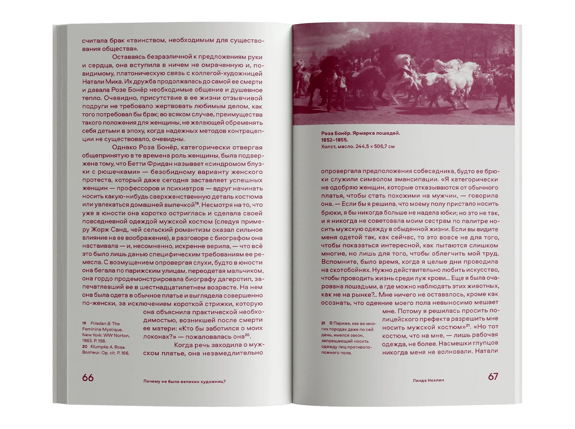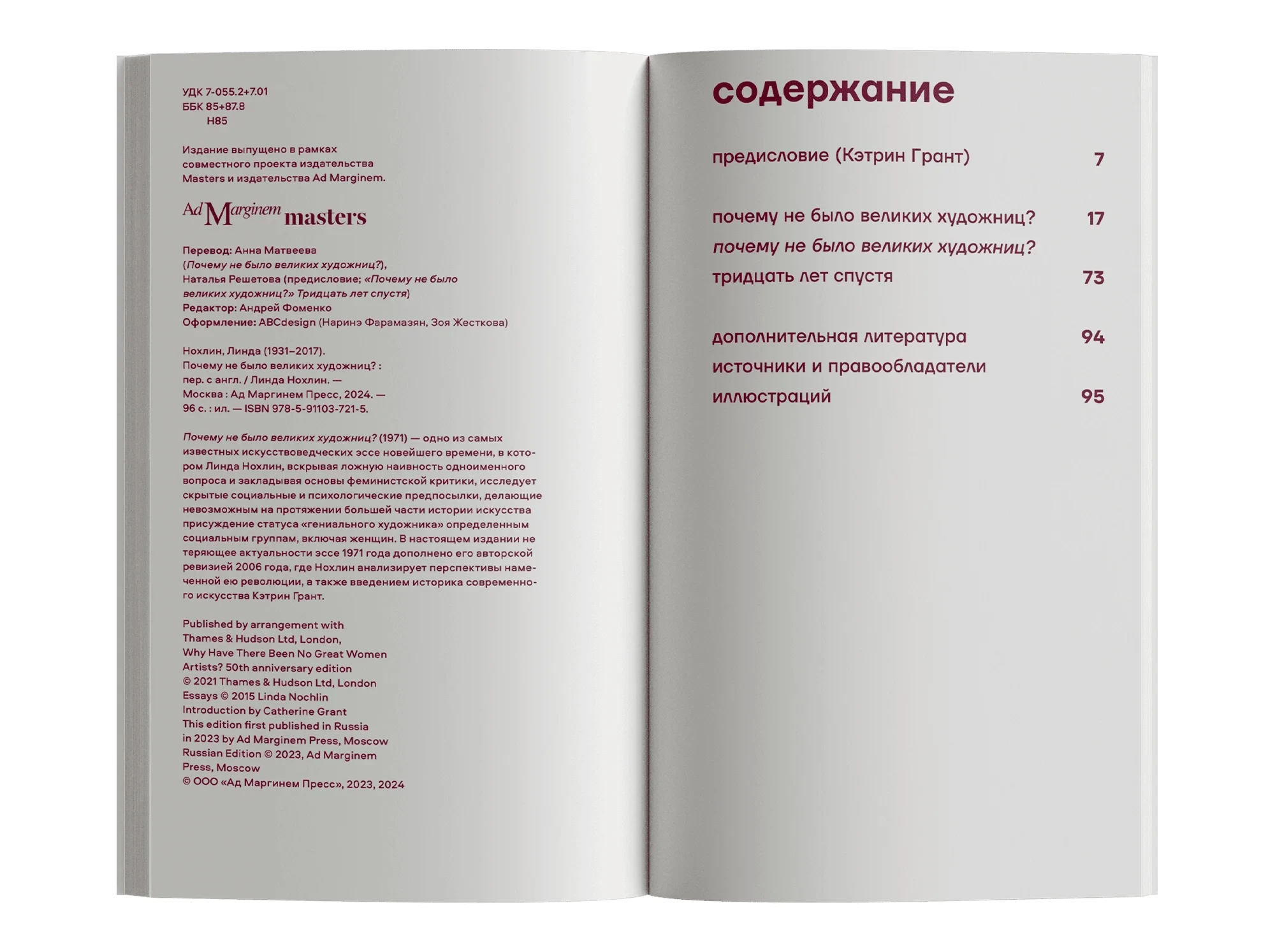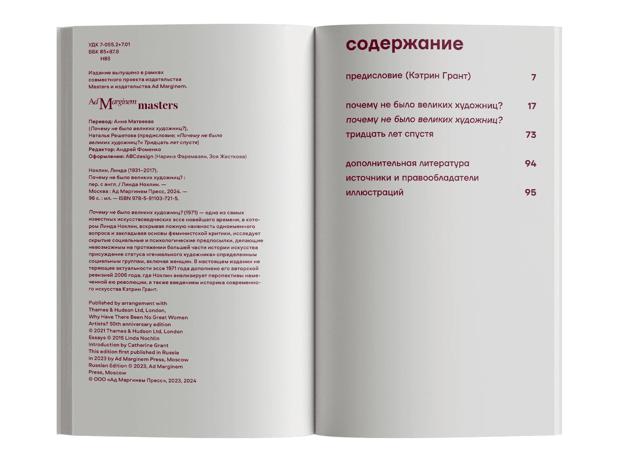 Книга Линды Нохлин «Почему не было великих художниц?» разоблачает миф о мужской «гениальности» в искусстве, анализирует институциональные барьеры для женщин и обсуждает эволюцию положения женщин-художниц сквозь призму феминизма.