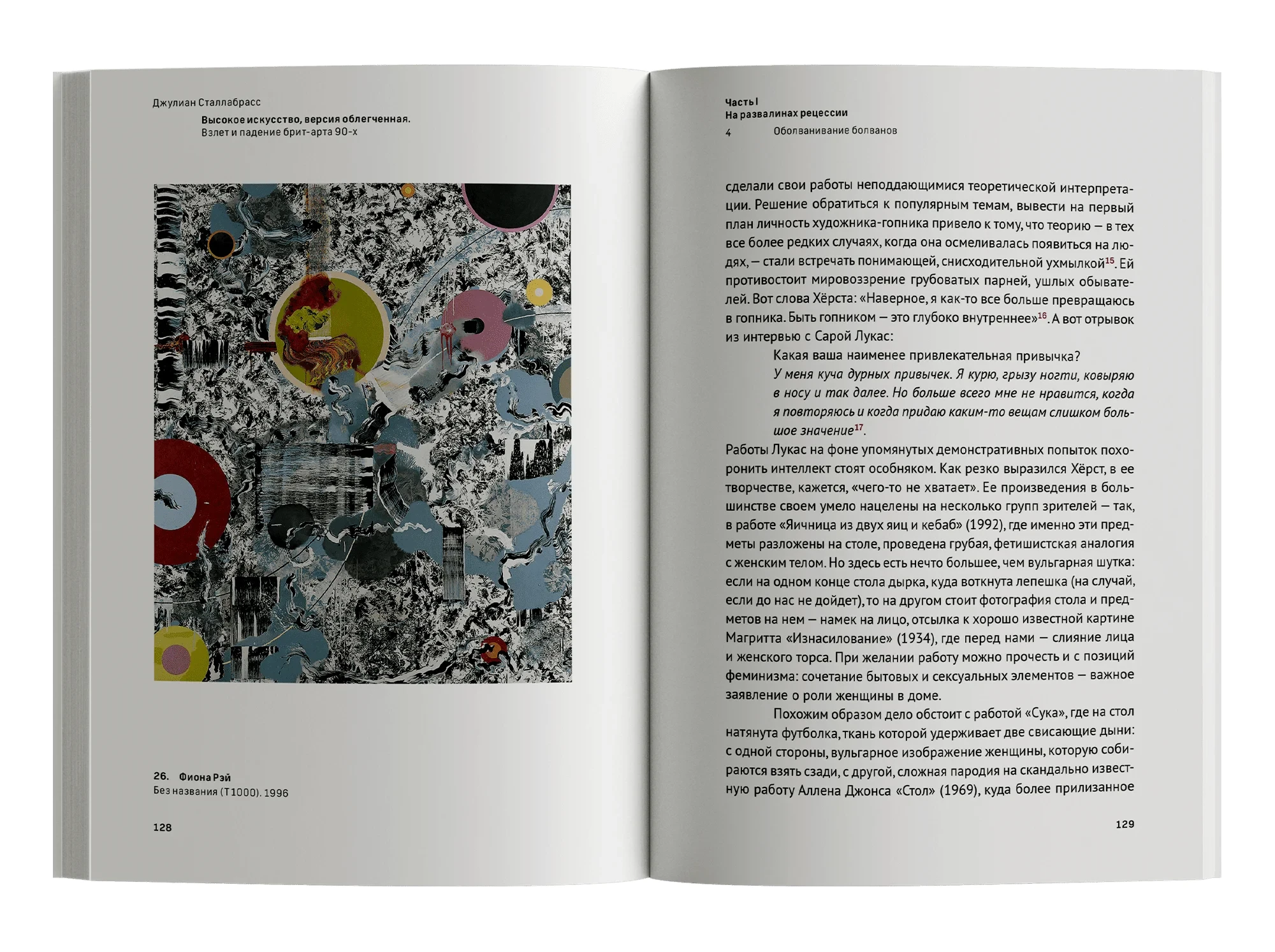 Книга Джулиана Сталлабрасса рассказывает о взлёте и падении феномена брит-арта 1990-х, анализируя творчество ключевых художников и влияние медиа, коммерции и скандальности на современное британское искусство.