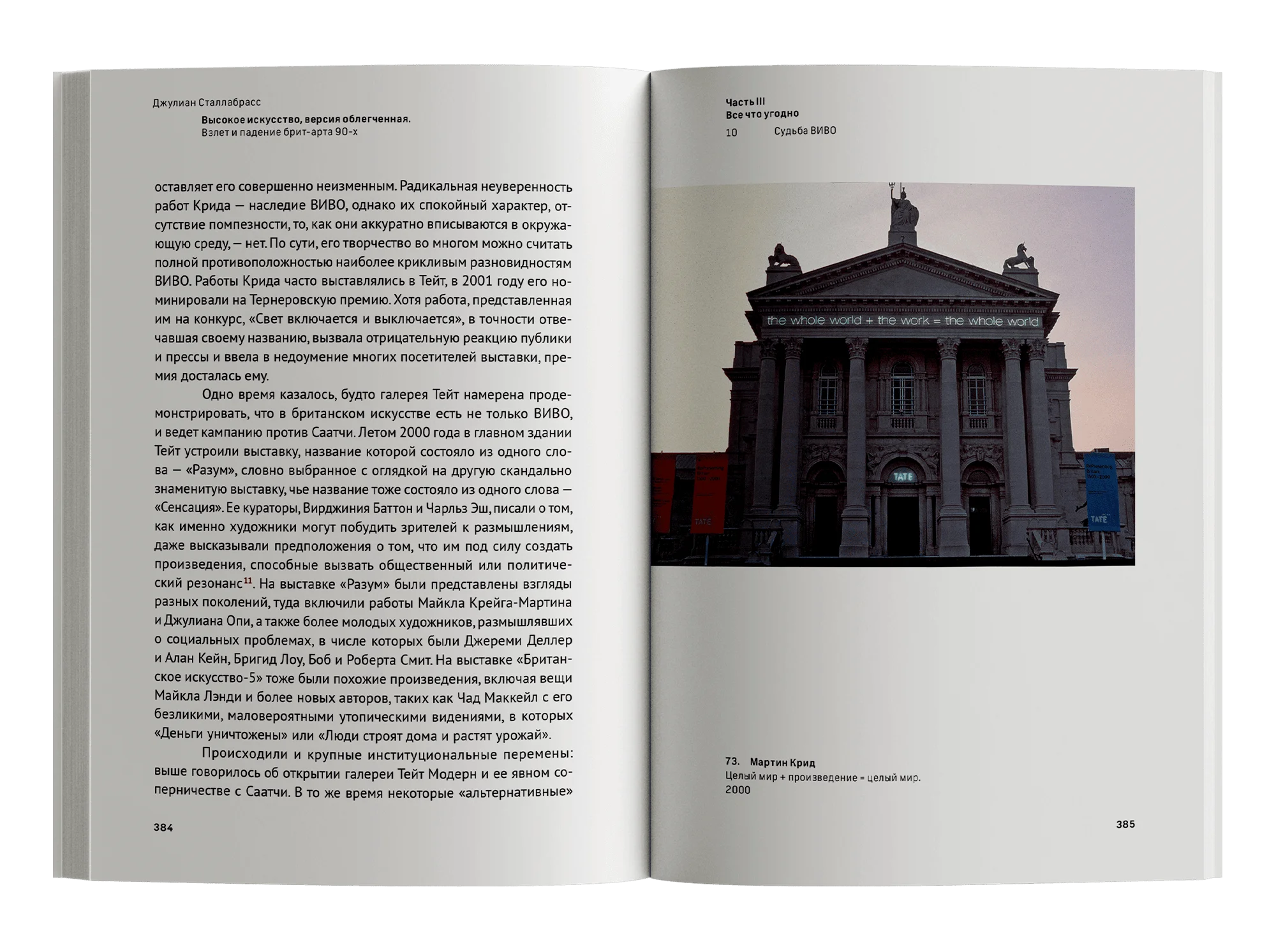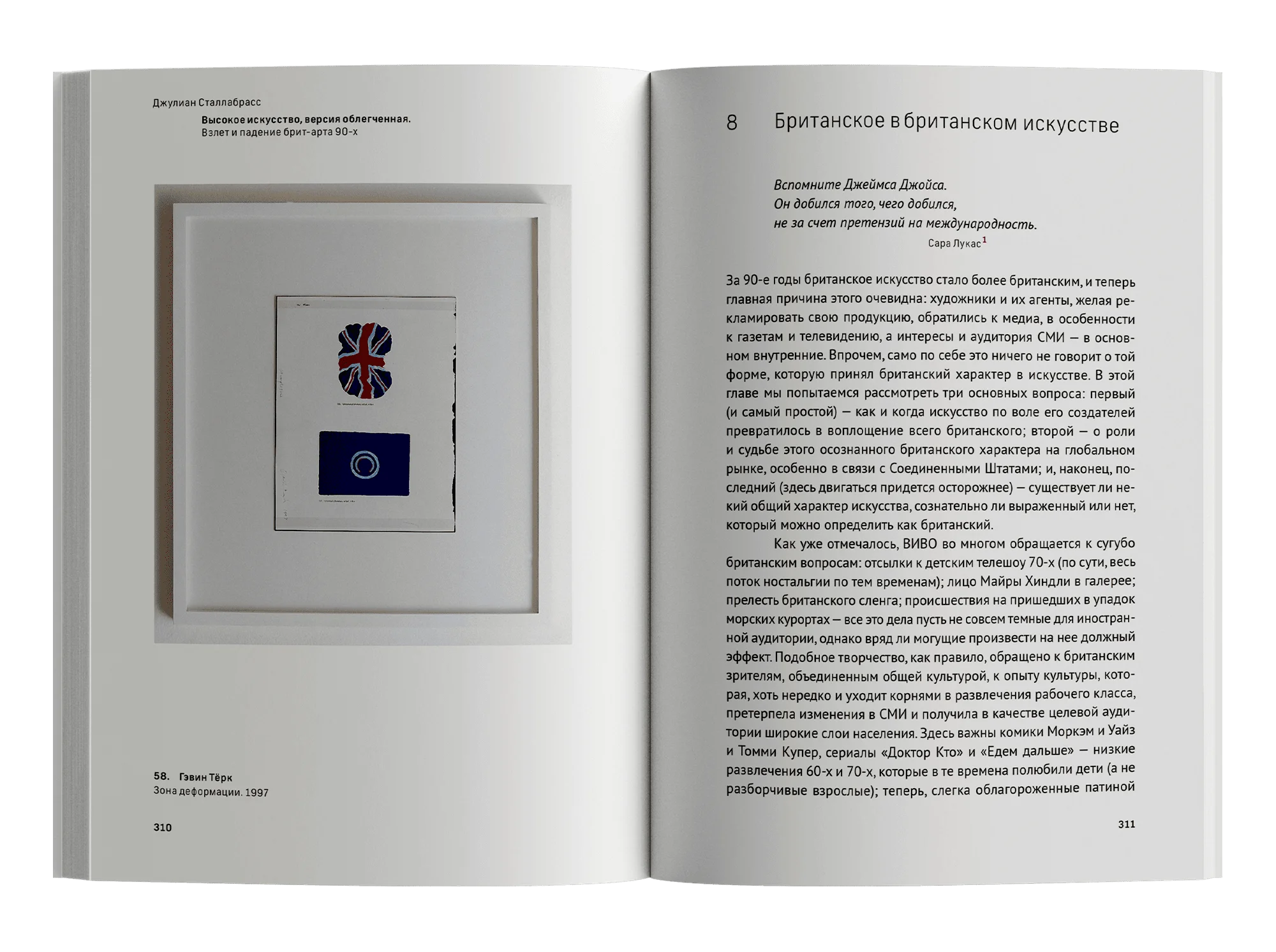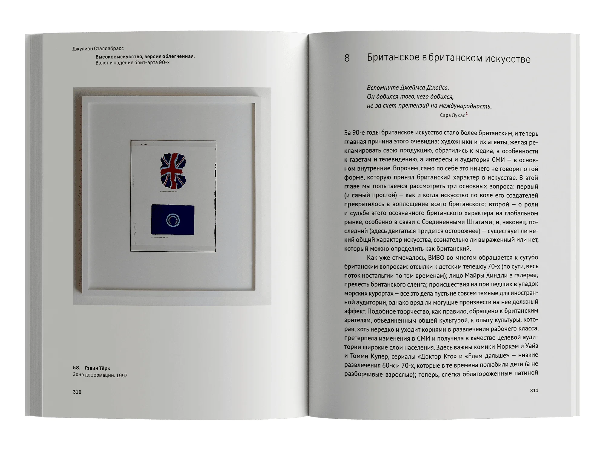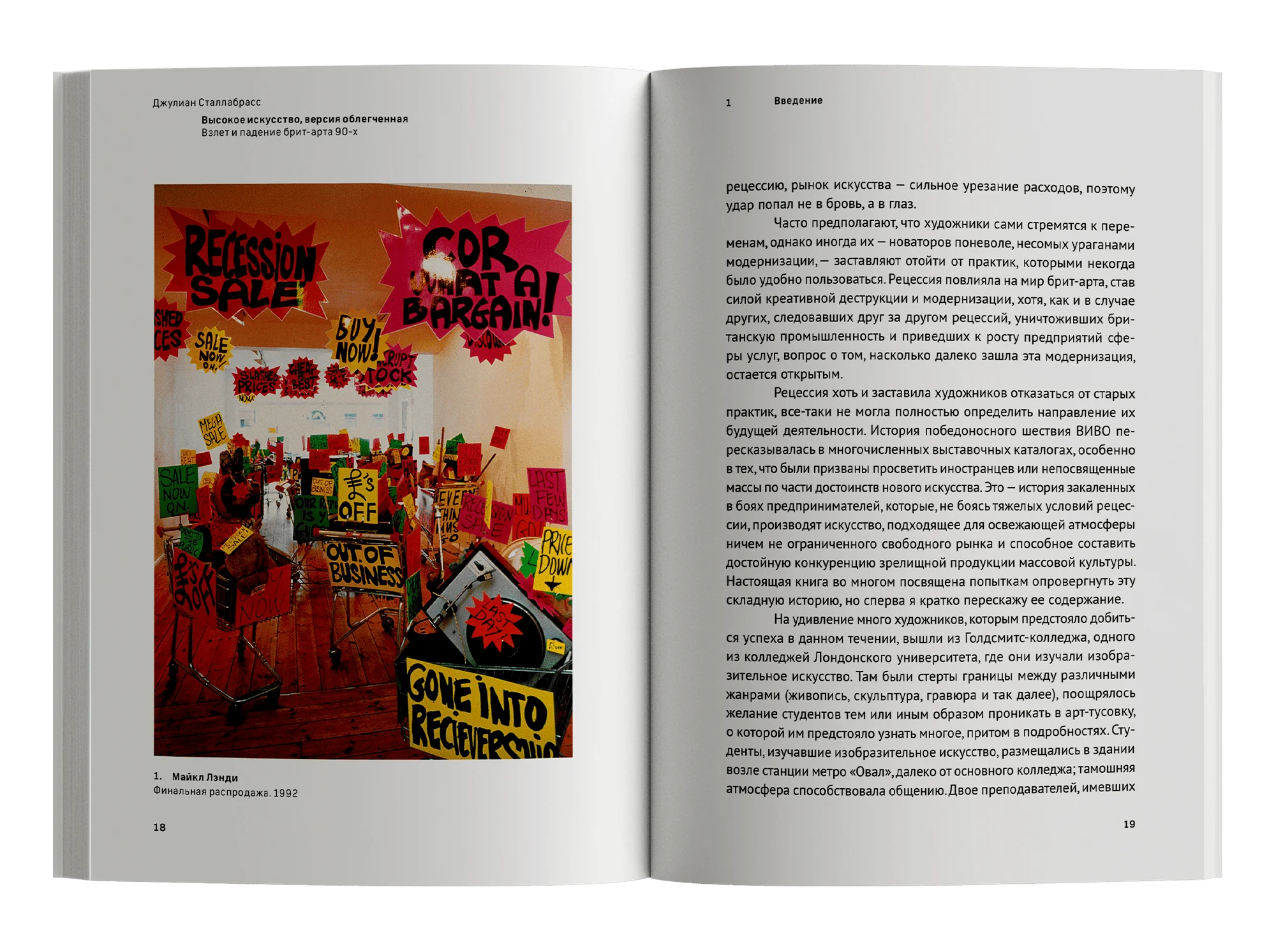 В настоящей книге британский искусствовед, арт-критик и художник Джулиан Сталлабрасс дает оценку феномену «молодого брит-арта» 1990-х годов (другое название, которое он дает этому движению — «высокое искусство, версия облегченная», сокращенно ВИВО). Автор попытался ознакомить широкий круг любителей современного искусства, привлеченных этим новым течением, с причинами, по которым британское искусство столь кардинально изменилось в конце прошлого века, и предоставить читателю средства для его анализа и критики. Сталлабрасс последовательно рассматривает творчество основных представителей ВИВО, молодых художников, одержимых коммерцией и масс-медиа: Дэмиена Хёрста, Трейси Эмин, Джейка и Диноса Чепменов, Сары Лукас и др.