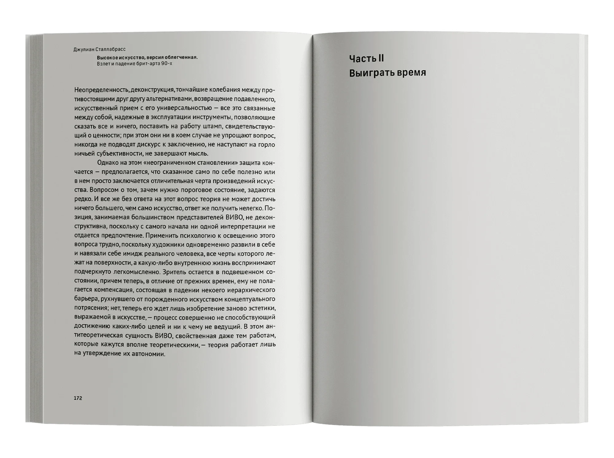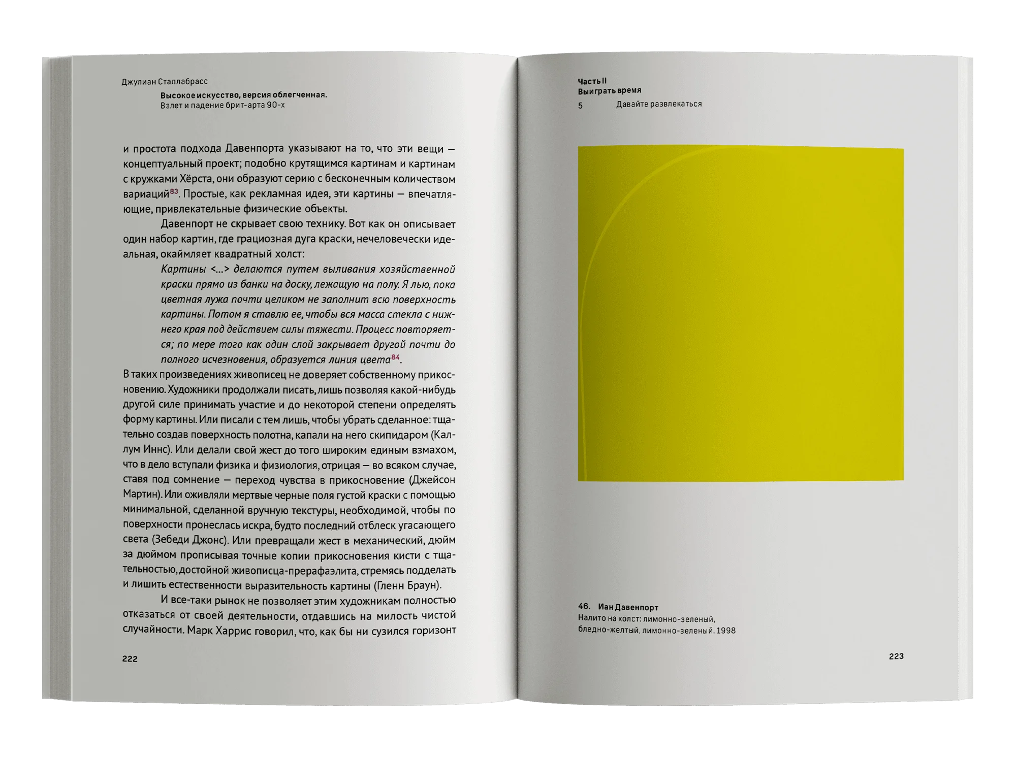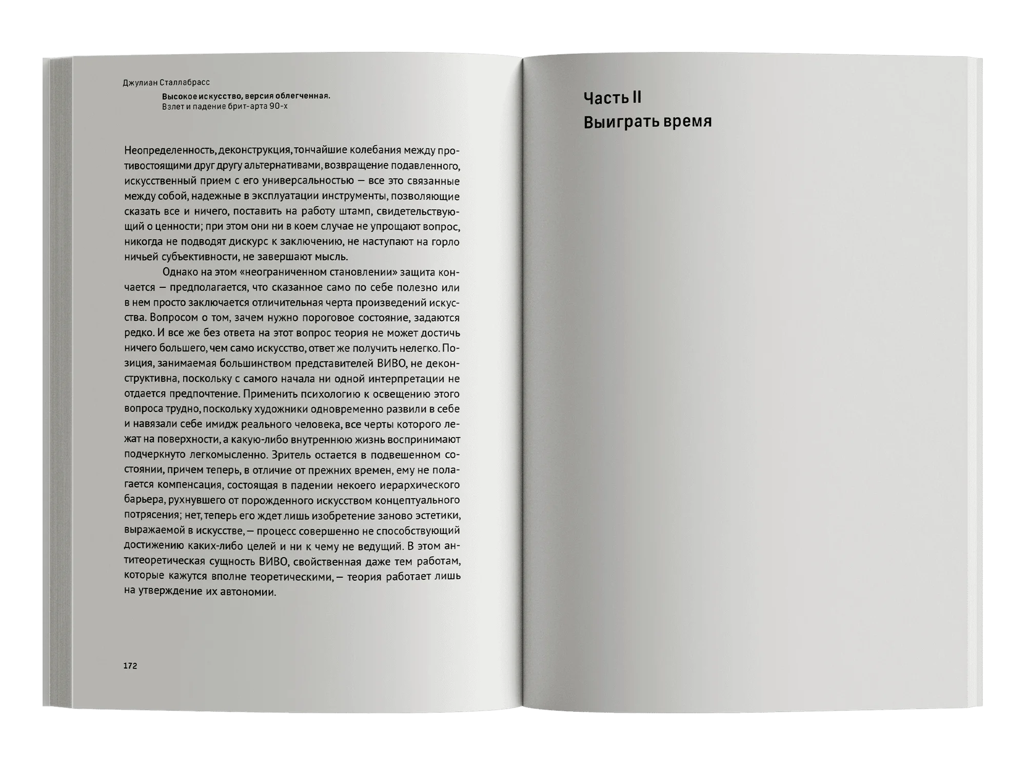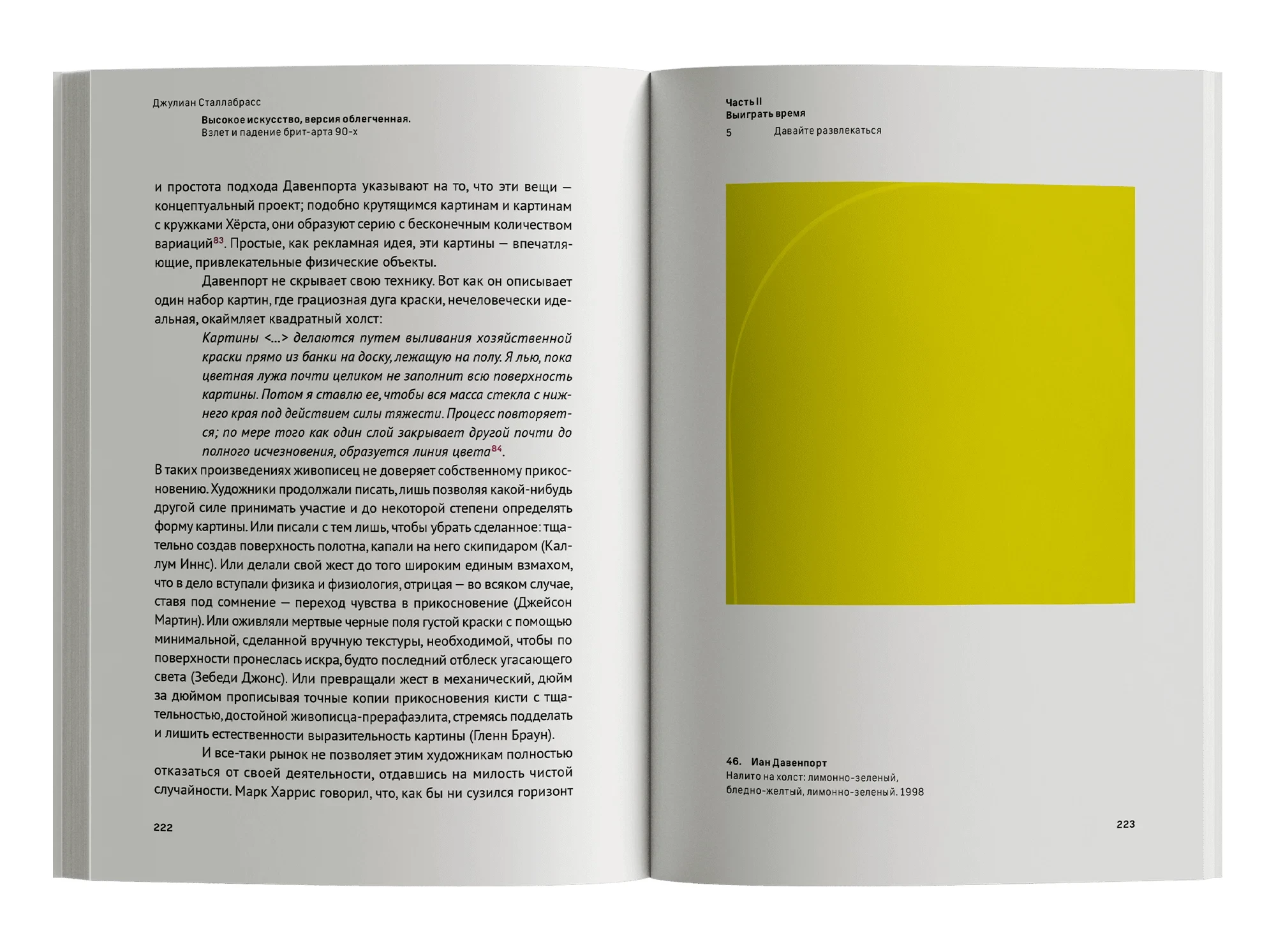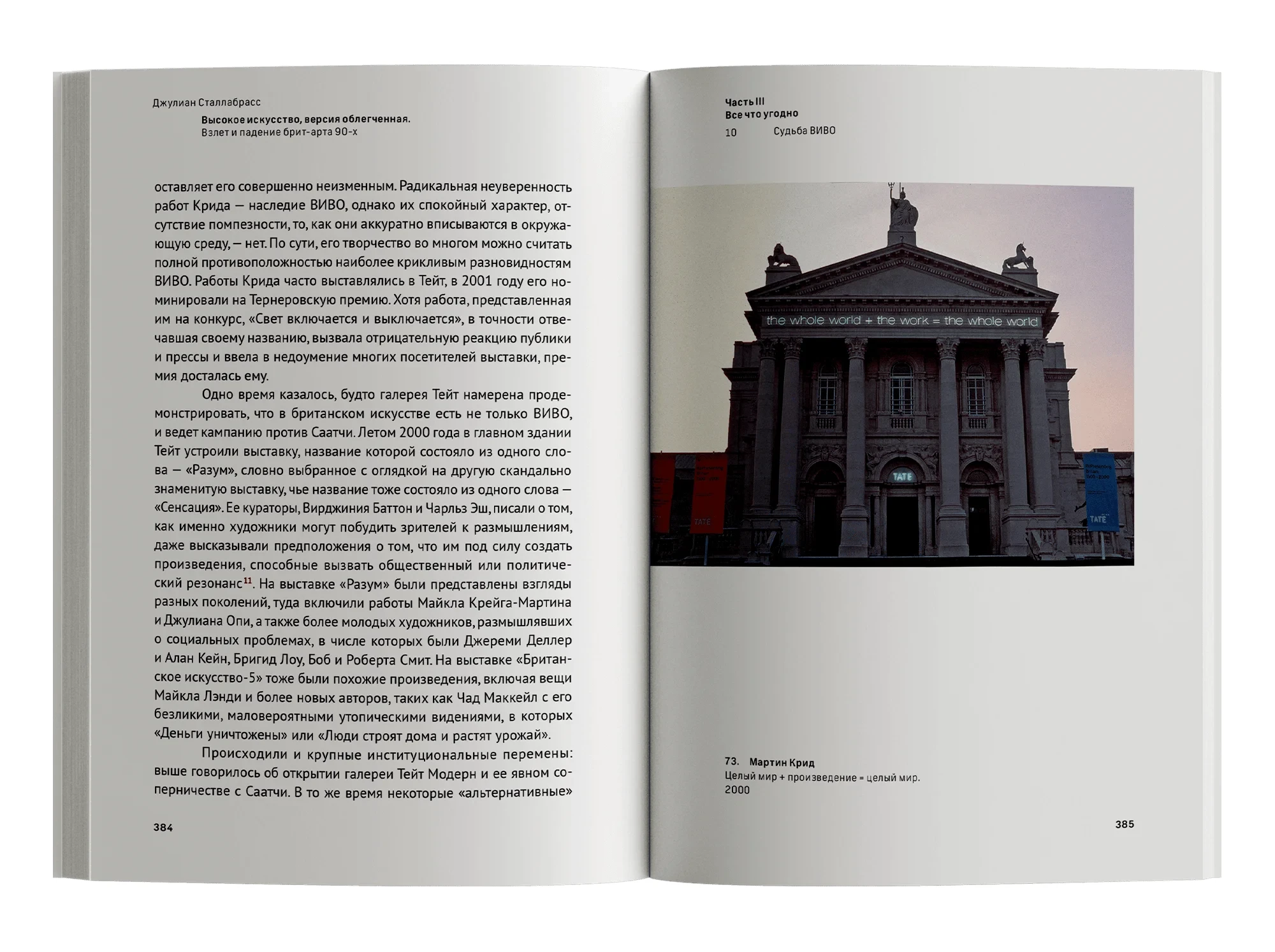 В настоящей книге британский искусствовед, арт-критик и художник Джулиан Сталлабрасс дает оценку феномену «молодого брит-арта» 1990-х годов (другое название, которое он дает этому движению — «высокое искусство, версия облегченная», сокращенно ВИВО). Автор попытался ознакомить широкий круг любителей современного искусства, привлеченных этим новым течением, с причинами, по которым британское искусство столь кардинально изменилось в конце прошлого века, и предоставить читателю средства для его анализа и критики. Сталлабрасс последовательно рассматривает творчество основных представителей ВИВО, молодых художников, одержимых коммерцией и масс-медиа: Дэмиена Хёрста, Трейси Эмин, Джейка и Диноса Чепменов, Сары Лукас и др.