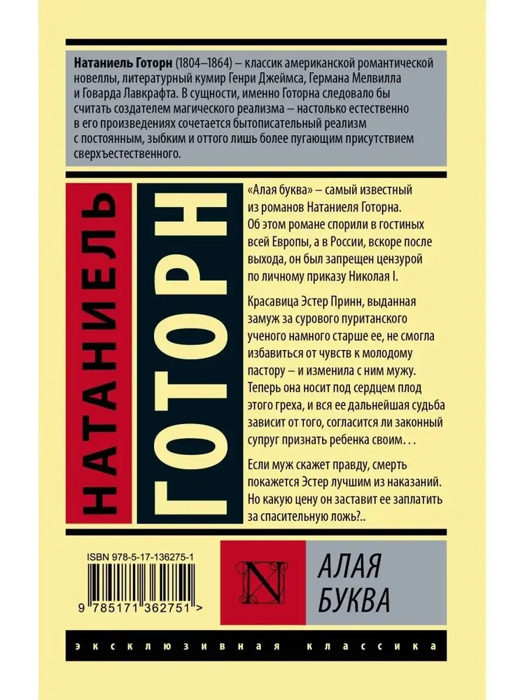 «Алая буква» – самый известный из романов Натаниеля Готорна. Об этом романе спорили в гостиных всей Европы, а в России, вскоре после выхода, он был запрещен цензурой по личному приказу Николая I.