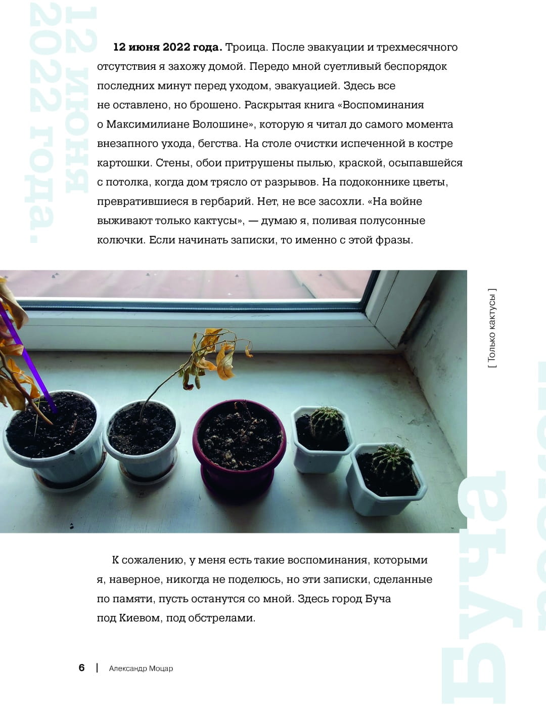 В книге «На войне выживают только кактусы» собраны короткие заметки, записанные автором в Буче и в Киеве, начиная с февраля 2022 года.