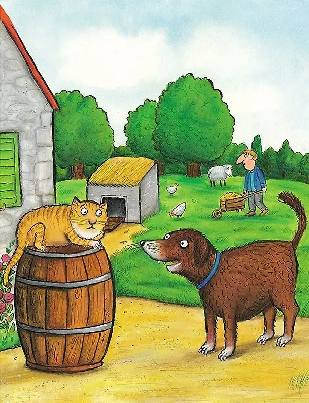 Жили-были на ферме пёс Барбос и кошка Матильда. Пёс мечтал об уютной тёплой конуре, где можно полежать и поглодать косточку. А кошка – о маленькой кошачьей дверце, чтобы ходить по своим важным делам, когда ей вздумается. Хозяин пообещал, что исполнит их мечты, если они помогут ему избавиться от лисы, повадившейся по ночам воровать кур.