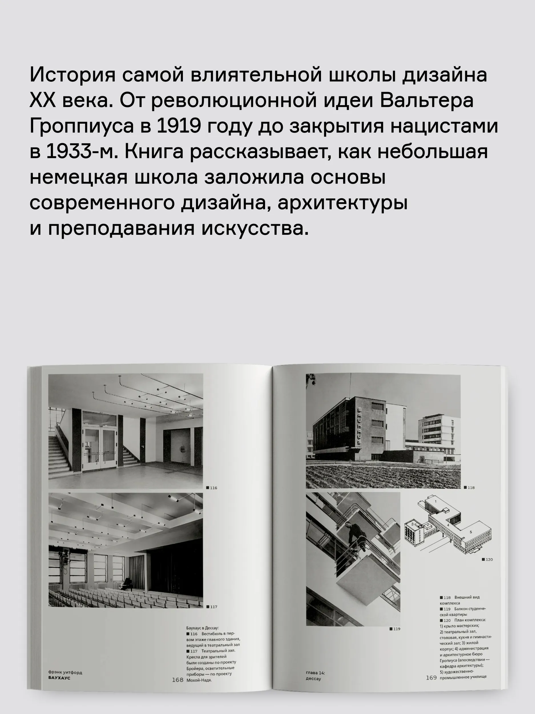 Впервые опубликованная в 1984 году, книга Фрэнка Уитфорда (род. 1941) остается одним из лучших обзоров истории и достижений Баухауса — школы архитектуры и дизайна, созданной в Веймарской республике в 1919 году, четырнадцать лет спустя закрытой нацистами, но успевшей за неполных полтора десятилетия своего существования заложить основы преподавания художественно-промышленных дисциплин на весь последующий век.