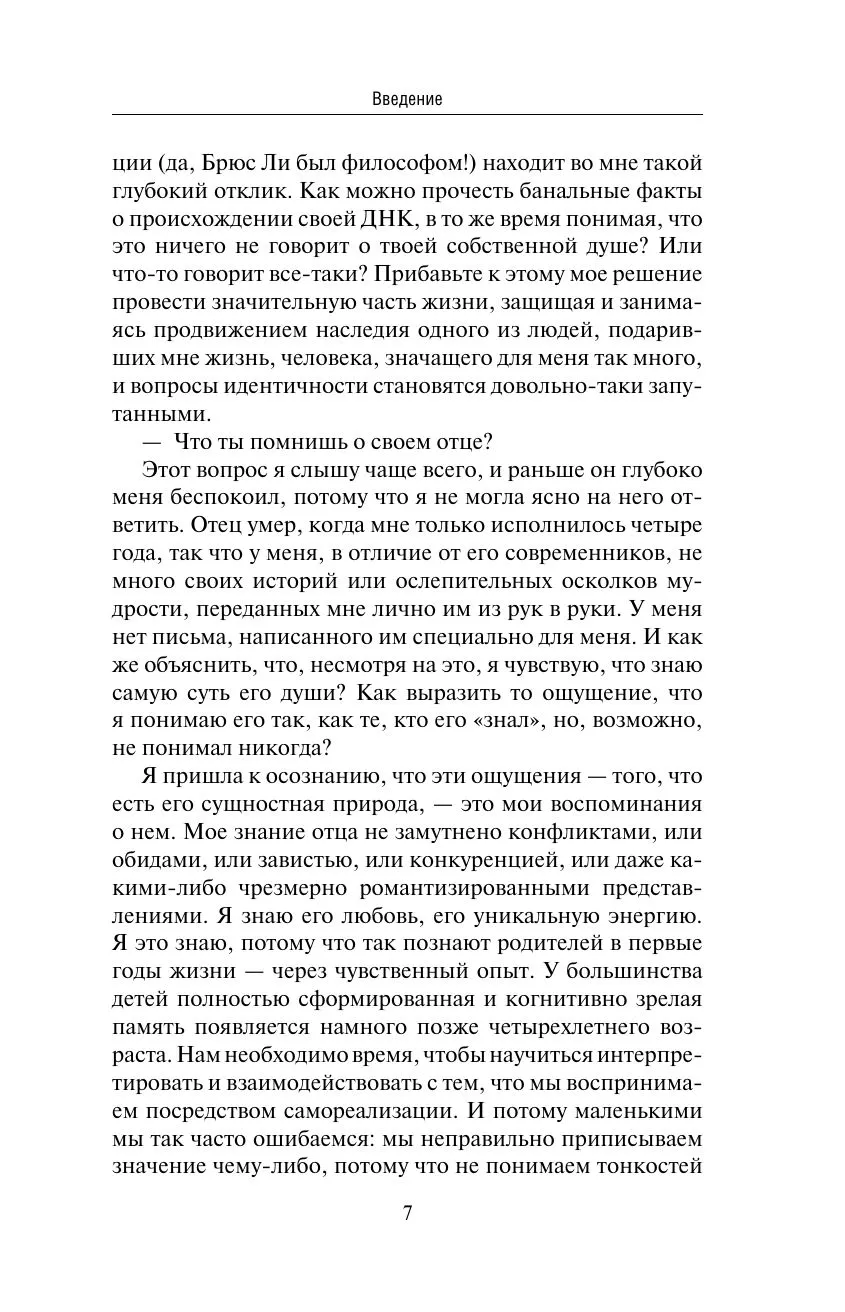 В книге Шеннон Ли рассказы о жизни знаменитого отца переплетаются с философскими уроками гармоничной и осознанной жизни. Этим урокам следует сама Шеннон, их же она старается передать другим людям, кто также стремится обрести опору в жизни.