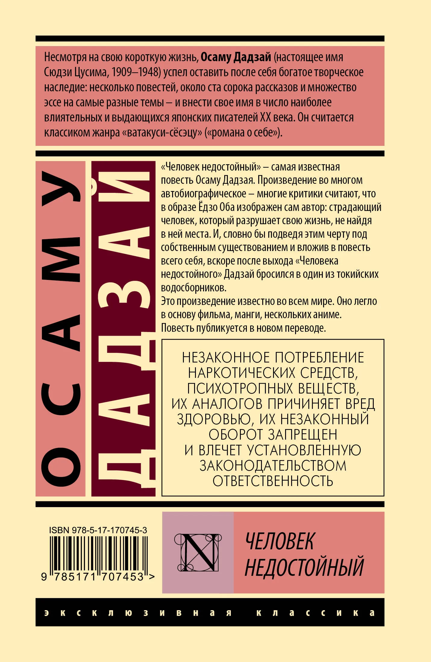 «Человек недостойный» — последняя повесть Осаму Дадзая и самая известная за пределами Японии. Повесть легла в основу фильма, манги и нескольких аниме. Многие критики считают, что в образе Ёдзо Оба, главного героя произведения, изображен сам автор — страдающий человек, который разрушает собственную жизнь, так и не найдя в ней места.