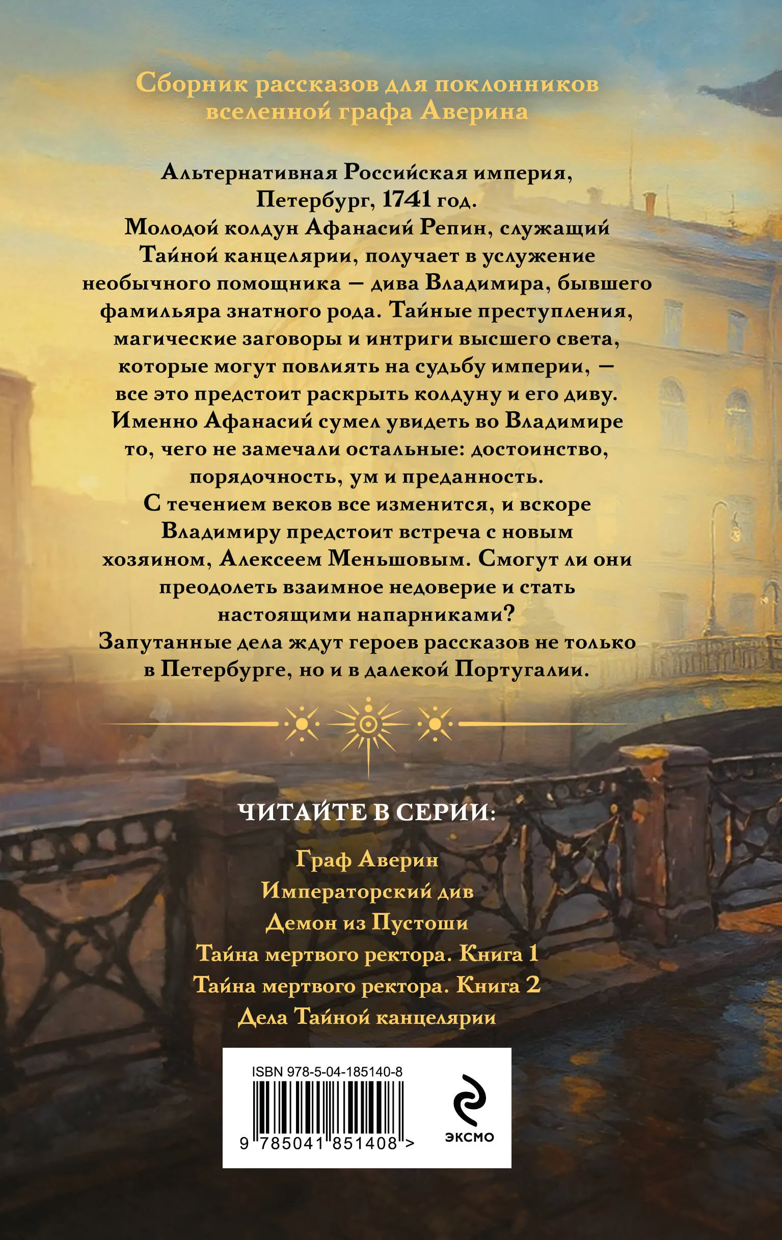 Альтернативная Российская империя, Петербург, 1741 год. Молодой колдун Афанасий Репин, служащий Тайной канцелярии, получает в услужение необычного помощника — дива Владимира, бывшего фамильяра знатного рода. Тайные преступления, магические заговоры и интриги высшего света, которые могут повлиять на судьбу империи, — всё это предстоит раскрыть колдуну и его диву. Именно Афанасий сумел увидеть во Владимире то, чего не замечали остальные: достоинство, порядочность, ум и преданность. С течением веков все изменится, и вскоре Владимиру предстоит встреча с новым хозяином, Алексеем Меньшовым. Смогут ли они преодолеть взаимное недоверие и стать настоящими напарниками?