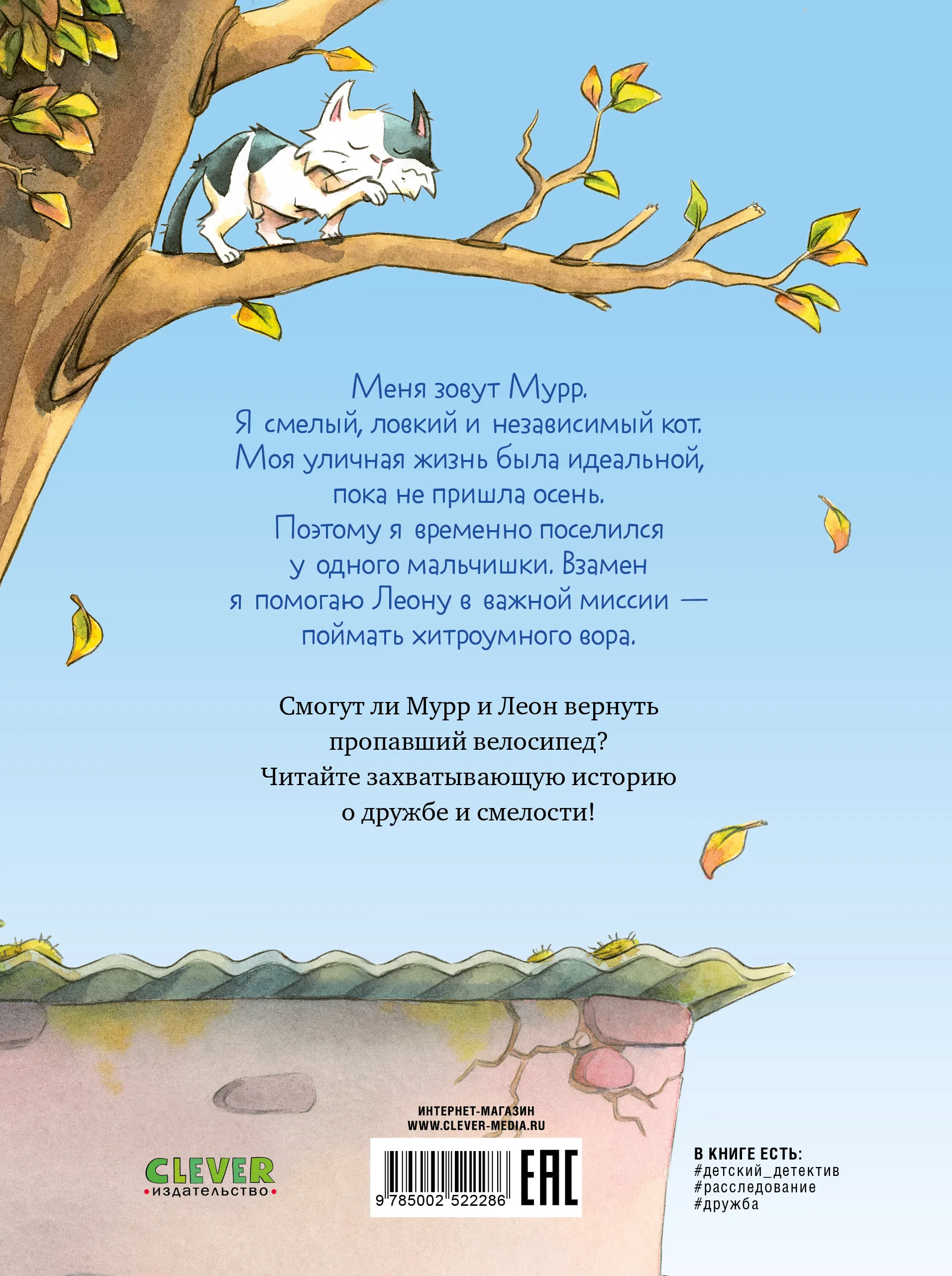 «Меня зовут Мурр. Я смелый, ловкий и независимый кот. Моя уличная жизнь была идеальной, пока не пришла осень. Поэтому я временно поселился у одного мальчишки. Взамен я помогаю Леону в важной миссии — поймать хитроумного вора».