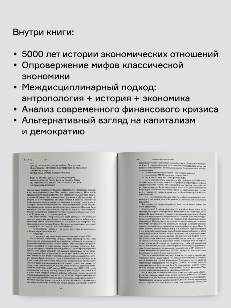 Эта книга — масштабное и революционное исследование истории товарно-денежных отношений с древнейших времен до наших дней, предпринятое американским антропологом, профессором Лондонской школы экономики и активистом, одним из «антилидеров» движения Occupy Wall Street, Дэвидом Гребером (1961–2020).
