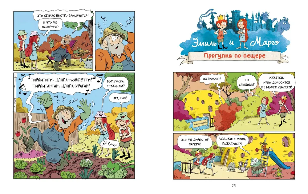 Эмиль и Марго становятся вожатыми в Монстролагере! Вот только управлять монстриками — задача не из простых… Эмиль и Марго — очень удачливые принц и принцесса. Ещё бы: их друзья — самые настоящие монстрики! Эти забавные и неугомонные создания всегда знают, как привнести в жизнь немного веселья… а иногда и хаоса! Вот и на этот раз Эмиля и Марго ждет много сюрпризов: встреча с ожившими персонажами сказок, сражение с жуткими монстрами-пугалками и даже визит в дом троллей. А уж когда дети решат поработать вожатыми в Монстролагере, без приключений точно не обойтись: ведь самая безобидная вылазка может закончиться чем-то непредсказуемым!