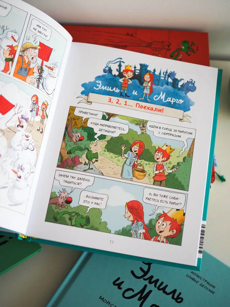 Ура! Эмиля и Марго ждут новые, настоящие приключения — и на этот раз всё самое интересное будет происходить не только в замке, но и за его пределами. Озорному принцу и принцессе предстоит взобраться на горы Пик, Шпиль и Макушку, переночевать в палатке в лесу... И как же здорово, что во время путешествия рядом с ними монстры! Ведь они подскажут, как покорить Пик, Шпиль и Макушку поскорее и не устать, устроиться вожатыми в Монстролагерь, договориться с Монстром туманов расчистить путь, чтобы покататься на лыжах, и даже перенестись на самый настоящий Бал монстров прямо из скучной комнаты!