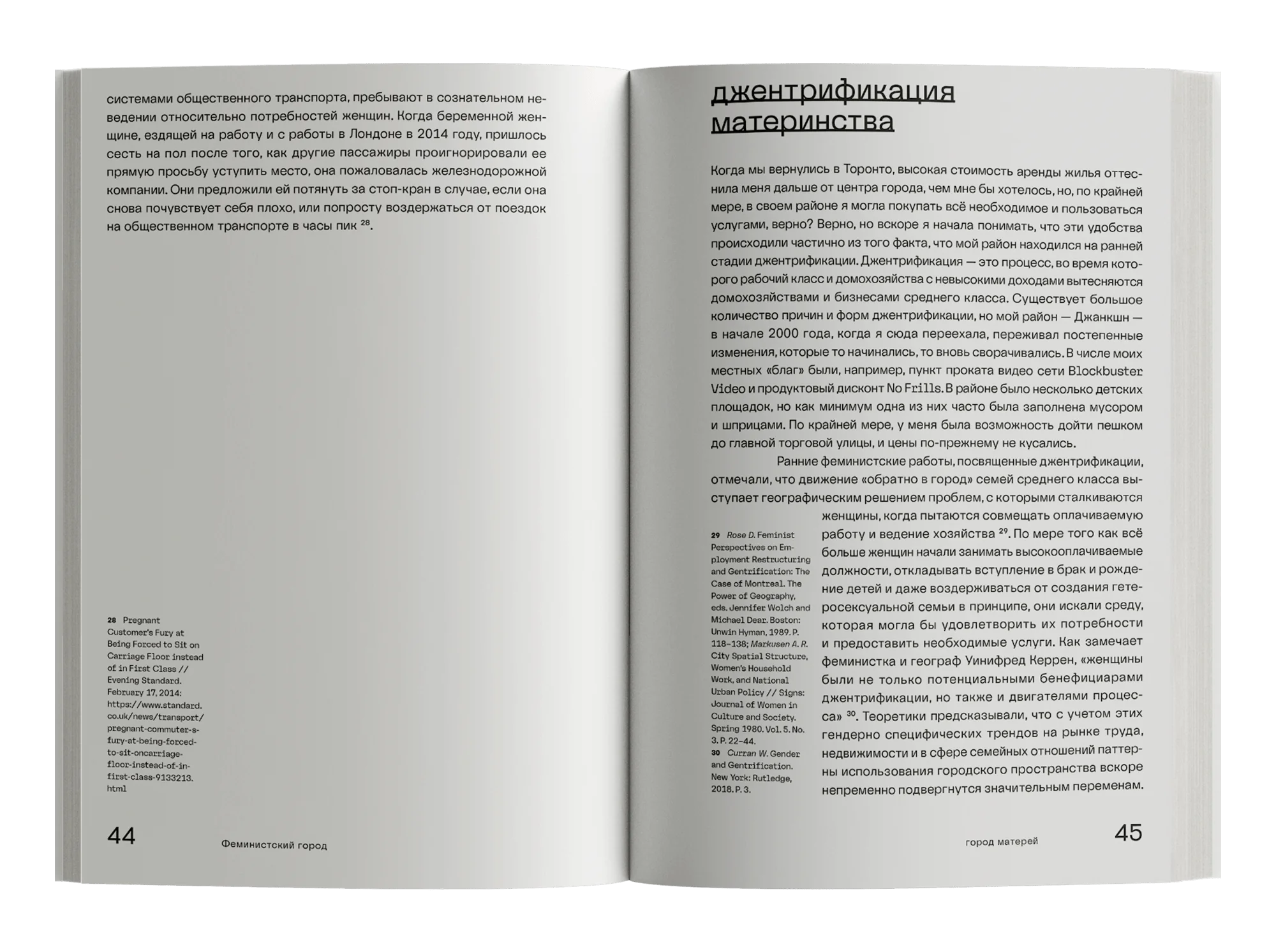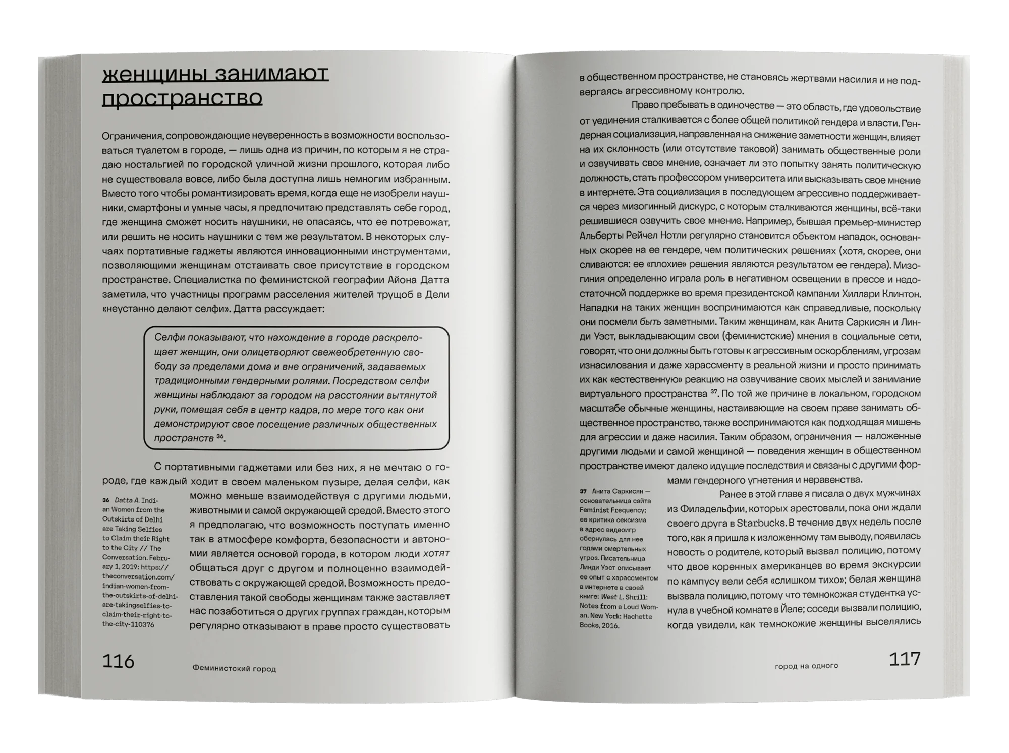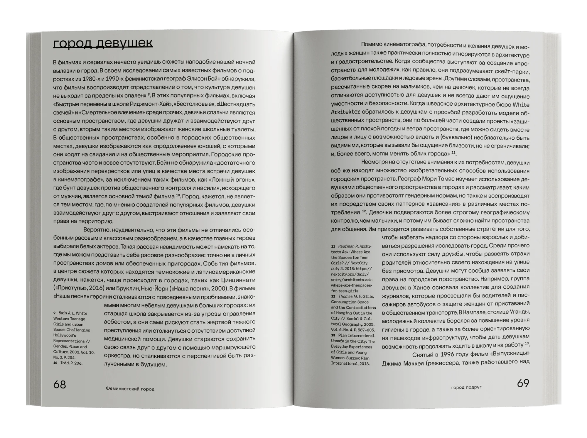 Книга суммирует результаты полевых исследований канадской географини и урбанистки Лесли Керн, занимающейся актуальными вопросами жизни женщин в современном городе. Авторка показывает, насколько структура города — от его планировки до норм и обычаев, регулирующих общение его жителей и жительниц, — превратилась в пространство гендерной борьбы. Описывая собственный опыт материнства, дружбы, работы и активизма, Лесли Керн предлагает применить к городскому планированию интерсекциональный феминистский подход и полагает, что это будет способствовать формированию урбанистики нового поколения.