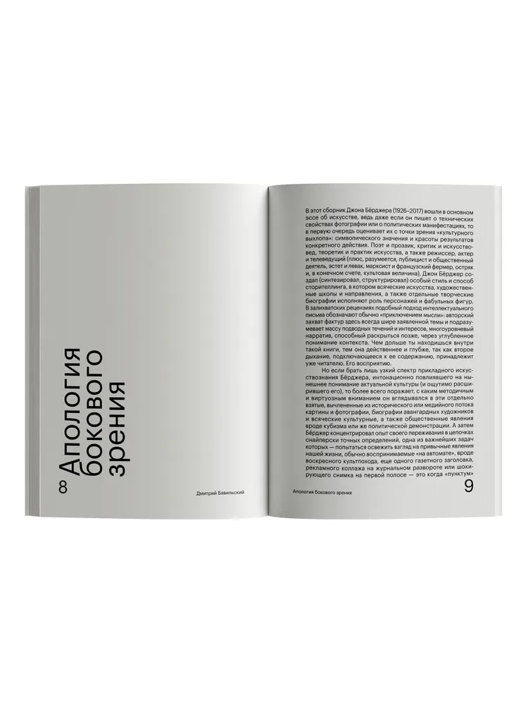 В книгу британского писателя и арт-критика Джона Бёрджера (1926–2017), специально составленную автором для российских читателей, вошли эссе разных лет, посвященные фотографии, принципам функционирования системы послевоенного искусства, а также некоторым важным фигурам культуры ХХ века, от Маяковского до Ле Корбюзье.
