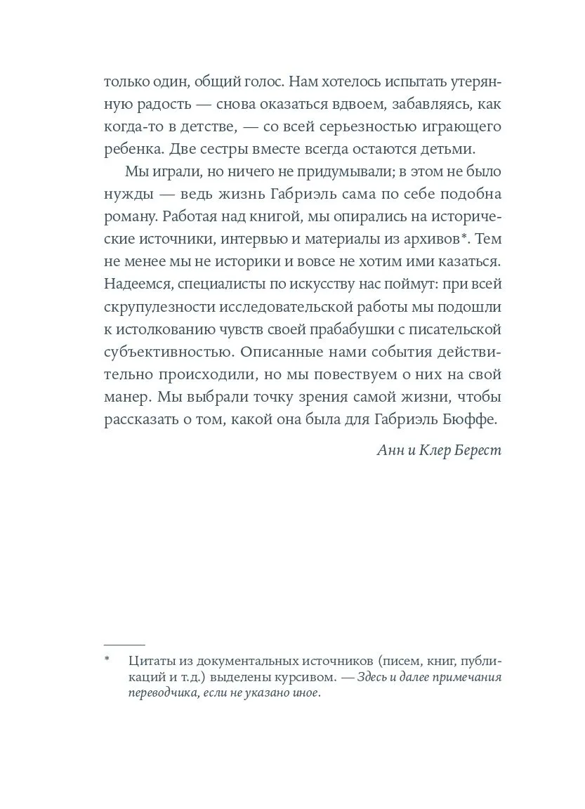 Опираясь на письма и дневники, правнучки героини Анн и Клер Берест предлагают новый взгляд на историю искусства, отводя Габриэль законную роль не свидетельницы, а созидательницы авангарда.