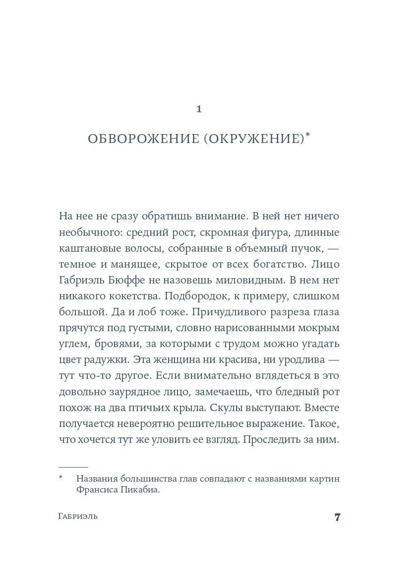 В начале XX века, когда женщина еще не могла претендовать на роль творца в искусстве, юная Габриэль Бюффе штурмовала композиторский класс консерватории, мечтая о музыкальной революции. Однако ей было суждено стать движущей силой одного из самых радикальных авангардных течений в живописи. Встретив молодого последователя импрессионистов Франсиса Пикабиа, Габи помогла ему сформулировать идею абстракции и решиться на перемену творческого пути. Их семейный и интеллектуальный союз стал одним из центров дадаизма. Габриэль окружали самые талантливые люди эпохи, ее острый ум и непростой характер восхищали и пугали одновременно. Для художника Марселя Дюшана она была источником вдохновения, а поэт Гийом Аполлинер обрел в ней друга и единомышленника. Но могла ли одаренная бунтарка остаться лишь женой эксцентричного гения?