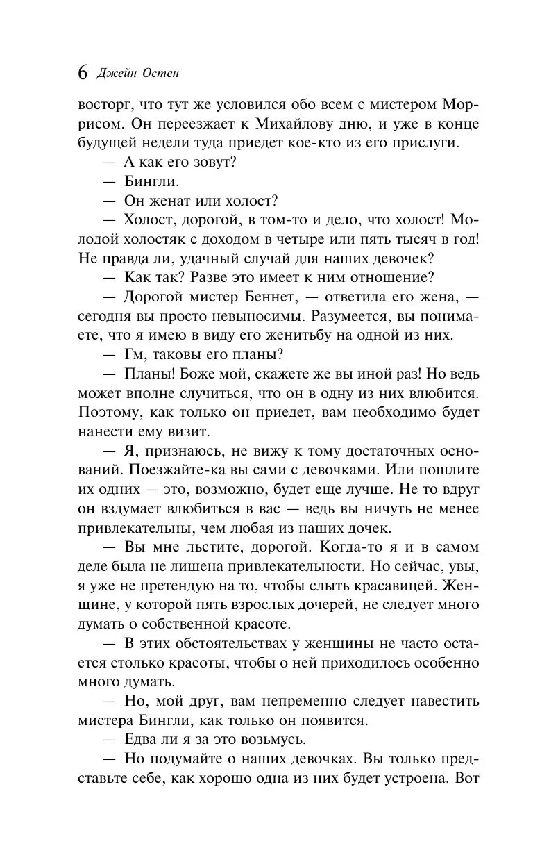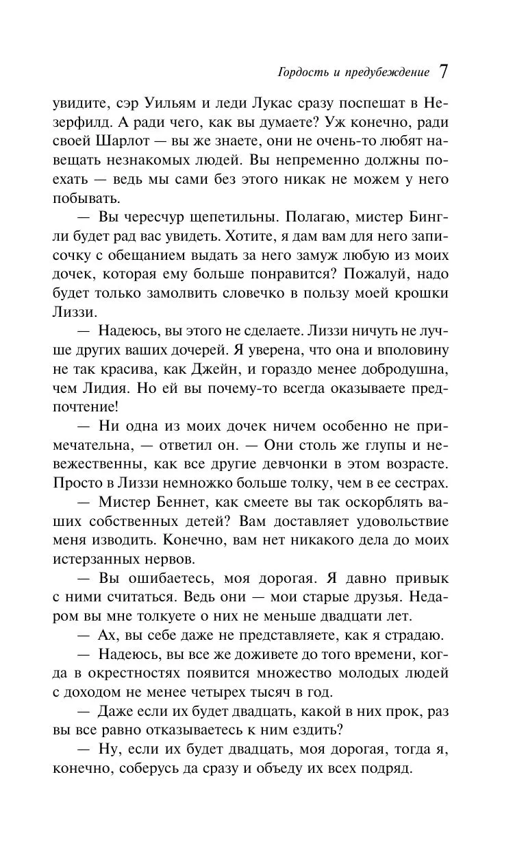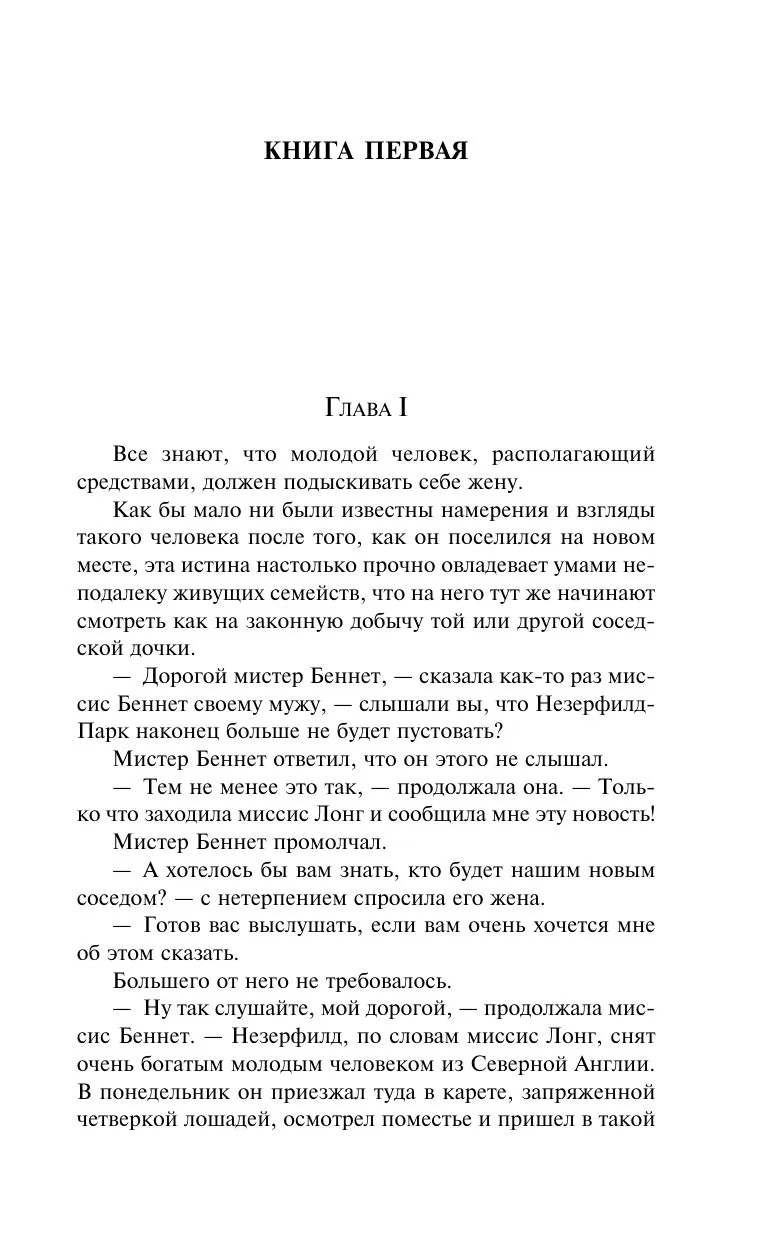 Что делает историю отношений умной и гордой Элизабет Беннет и не менее гордого мистера Дарси столь популярной? Англия, конец XVIII века. Родители пятерых сестер Беннет озабочены тем, чтобы удачно выдать дочерей замуж. Размеренная жизнь семейства переворачивается вверх дном, когда по соседству появляется молодой джентльмен — мистер Бингли. Среди друзей нового соседа оказывается немало утонченных аристократов, которые не прочь поухаживать за очаровательными сестрами. Своевольная Элизабет знакомится с красивым и высокомерным мистером Дарси. Между ними разгорается нешуточное противостояние, результатом которого может стать как любовь, так и ненависть. Смогут ли они преодолеть все разногласия и недоразумения? И все-таки что же вот уже несколько веков заставляет читателей смеяться и плакать, трепетать от гнева и радоваться?