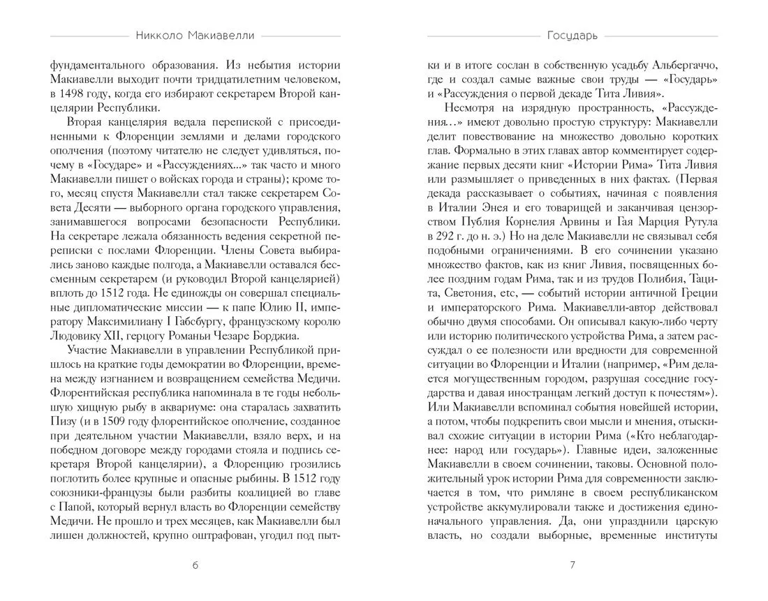 Флорентийский мудрец Никколо Макиавелли подарил миру одну из величайших книг своего времени - трактат "Государь", вызвавший волну бурных обсуждений и ожесточенных дискуссий. Его учение, породившее понятие "макиавеллизм", воспринималось веками как символ политической аморальности и предательства. Между тем, взгляд на творческое наследие Макиавелли существенно изменился в свете исторического опыта минувшего столетия, открыв новый пласт понимания его идей и взглядов. Настоящее издание объединяет две ключевые работы мыслителя: сам трактат "Государь" и сопровождающие его рассуждения о первых десяти книгах римского историка Тита Ливия.