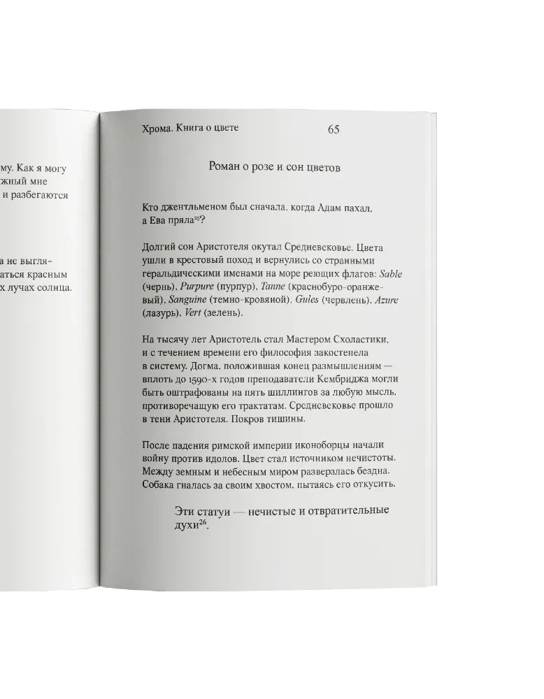 «Хрома. Книга о цвете» — поэтическое исследование цвета в искусстве, литературе и науке, где Дерек Джармен сочетает личные воспоминания с историей и теорией цвета. Книга раскрывает эмоциональное и культурное значение оттенков через призму собственного опыта автора.