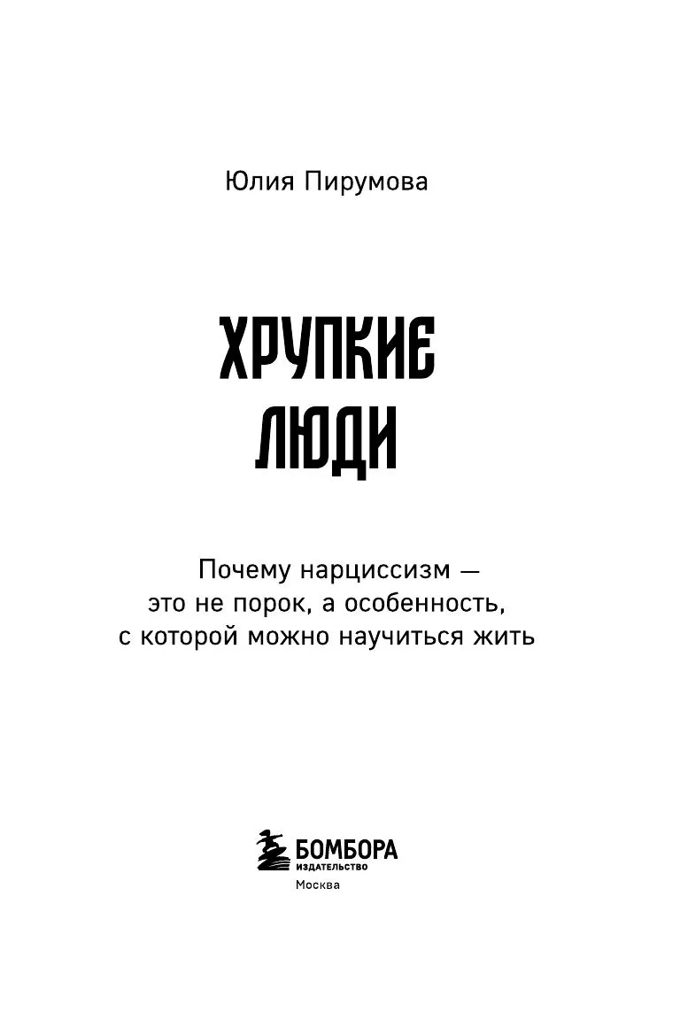 Автор этой книги, психотерапевт и эксперт по нарциссизму Юля Пирумова, разрушает сложившиеся годами стереотипы о нарциссах и приоткрывает тайную дверь в хрупкий мир, где каждый невольно узнает самого себя.