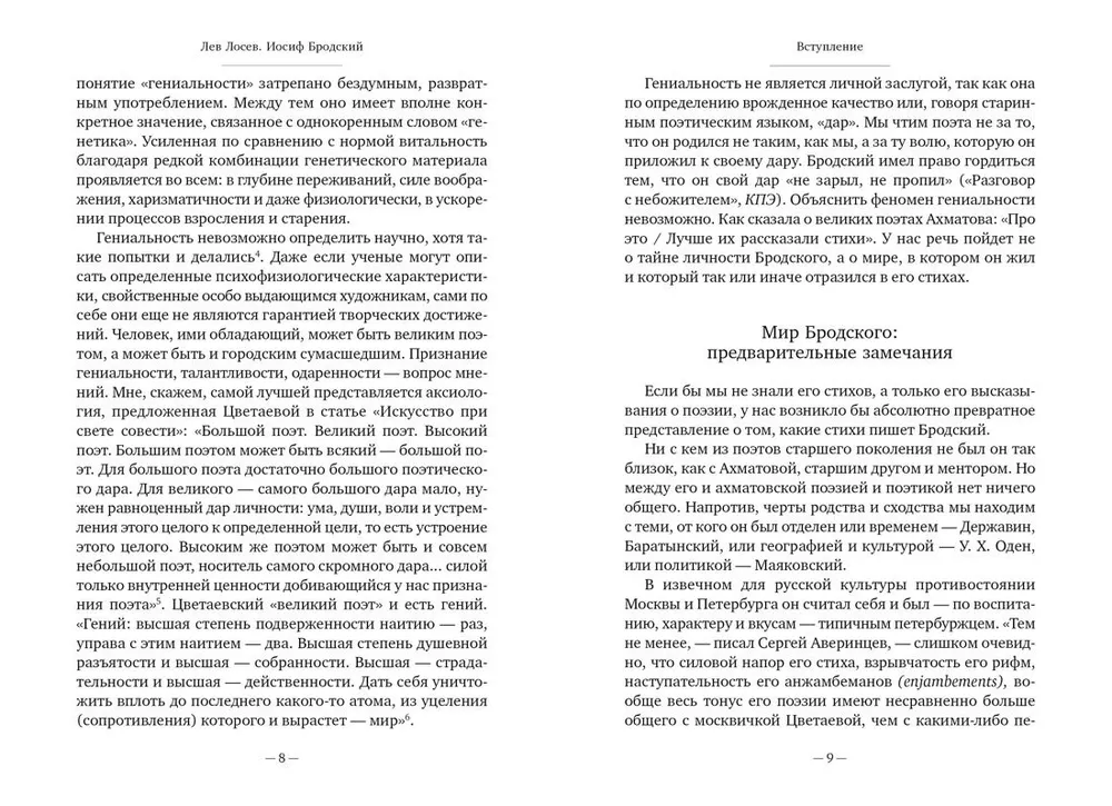Жизненный путь Иосифа Бродского неотделим от пути литературного, их взаимовлияние бесспорно, драматические повороты в судьбе поэта были обусловлены в первую очередь его стремлением к творческой свободе. Льва Лосева связывала с Иосифом Бродским не только многолетняя дружба: Лосев переводил его эссеистику, был исследователем и комментатором стихотворного наследия.