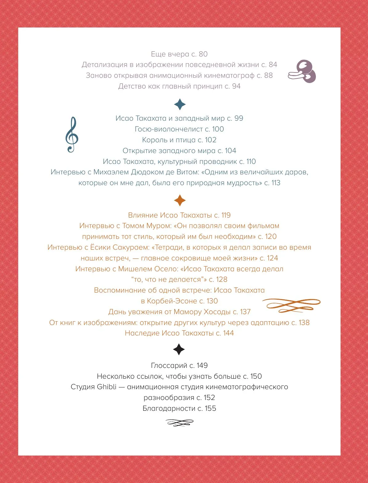 Книга станет прекрасным подарком для каждого поклонника японской анимации, расскажет множество неизвестных фактов о мастере и поможет составить полное представление об истории жанра. В издании представлены уникальные фотографии и кадры из произведений, а также интервью с различными деятелями культуры, которые делятся своими воспоминаниями о работе с Такахатой.
