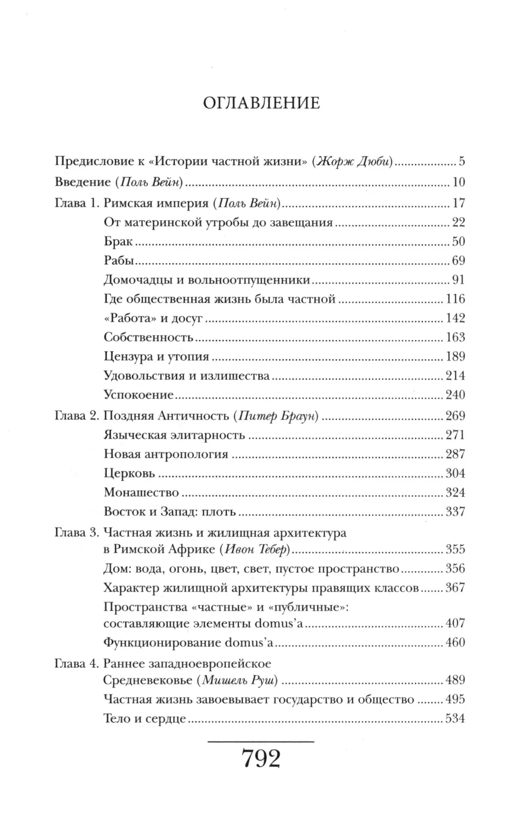 Пятитомник охватывает всю историю Запада с Античности до конца XX века. В первом томе — частная жизнь Древнего Рима, средневековой Европы, Византии: системы социальных взаимоотношений, разительно не похожих на известные нам. Анализ институтов семьи и рабовладения, религии и законотворчества, быта и архитектуры позволяет глубоко понять трансформации как уклада частной жизни, так и европейской ментальности, а также высвечивает вечный конфликт частного и общественного.