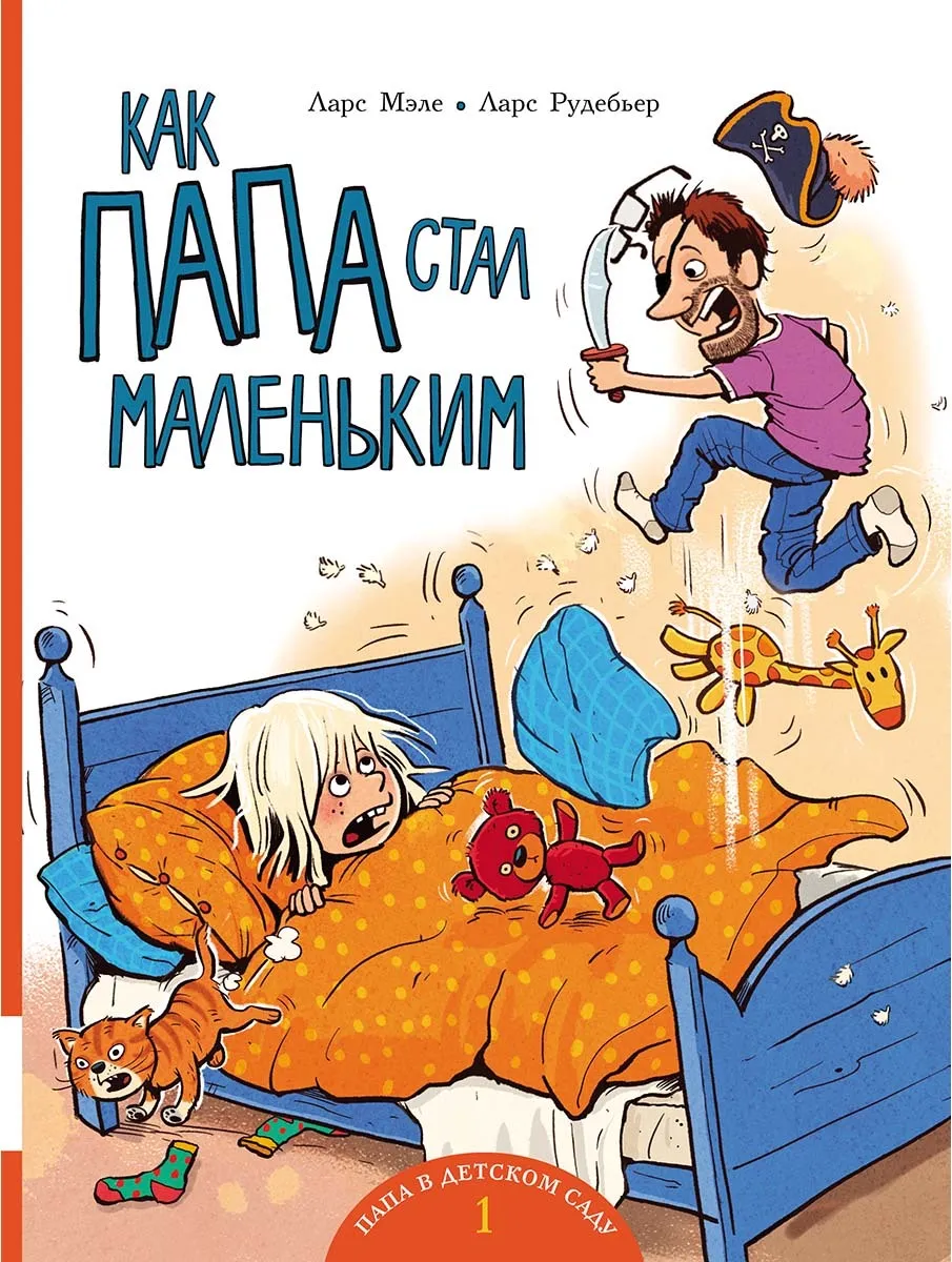 «Как папа стал маленьким» ̶ первая книга новой юмористической серии от норвежского дуэта Ларса Мэле и Ларса Рудебьера, уже известного читателям по циклу «Друзья-динозаврики».