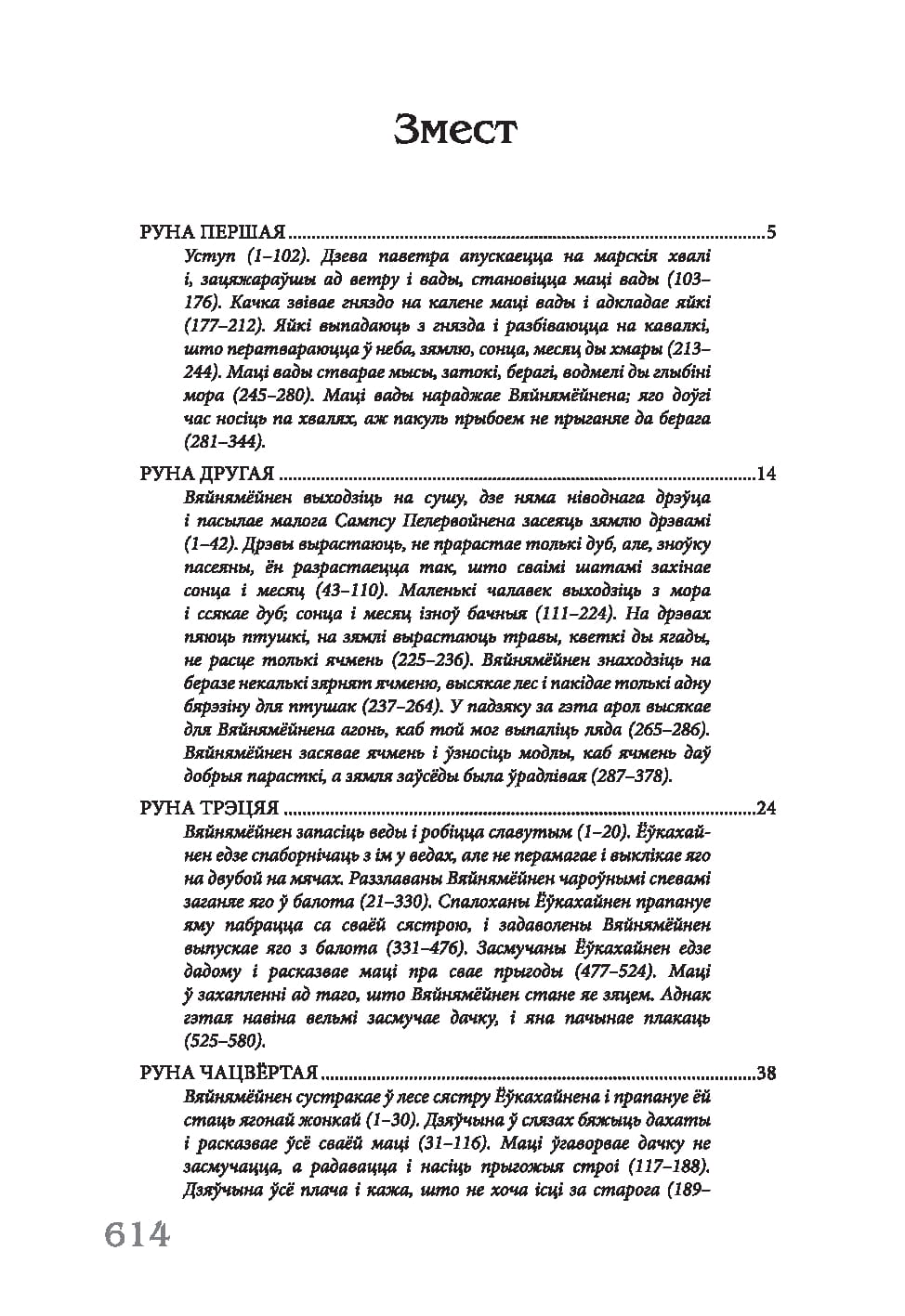 Славуты карэла-фінскі паэтычны эпас упершыню прануецца чытачу ў перакладзе непасрэдна з мовы арыгіналу – фінскай.