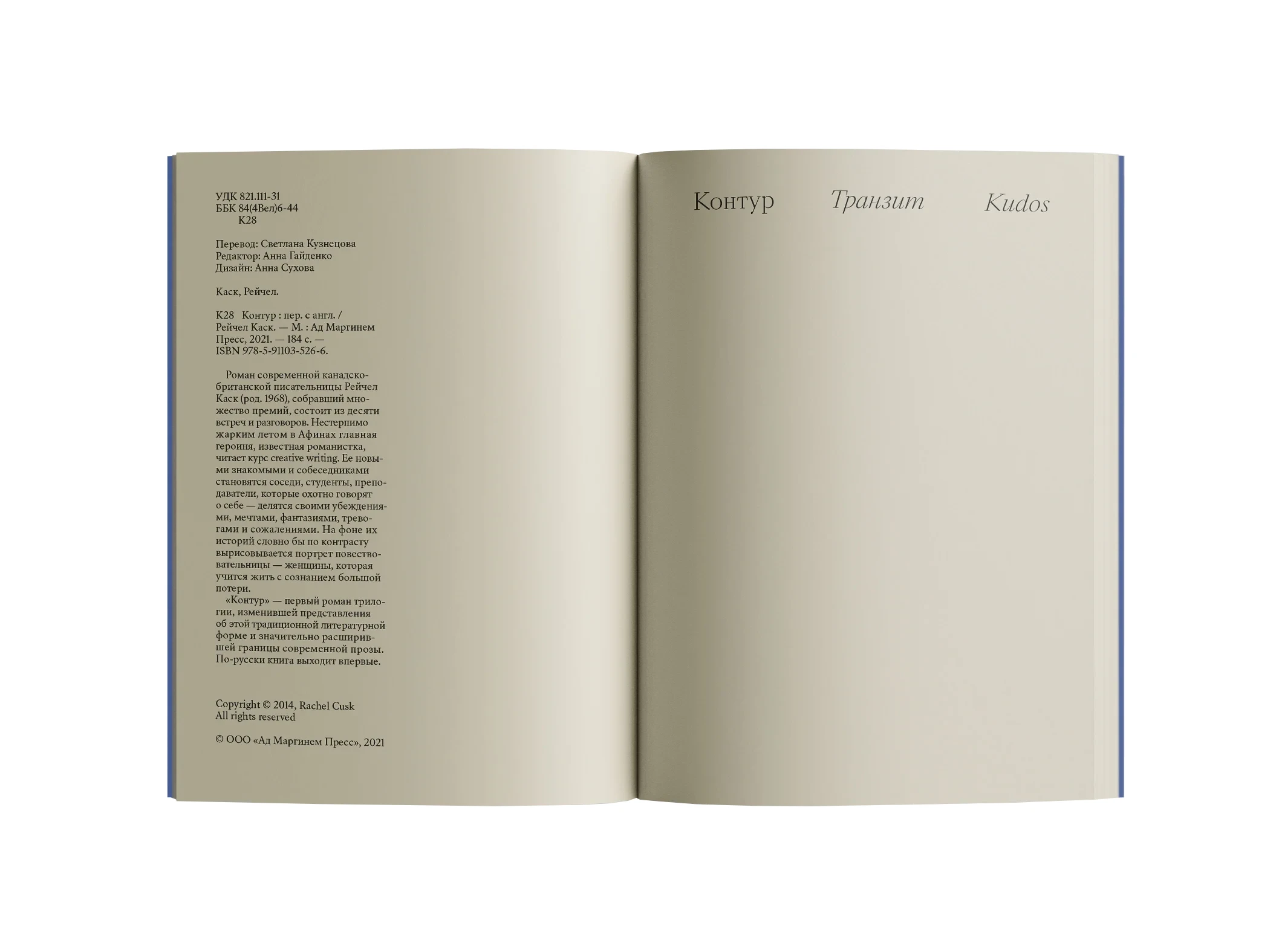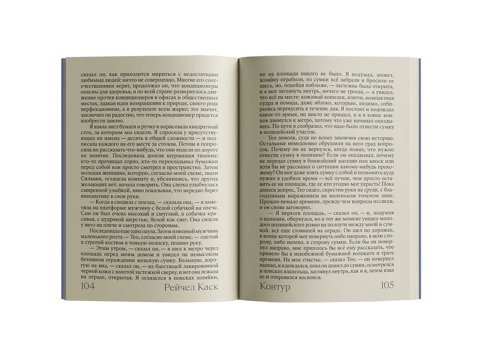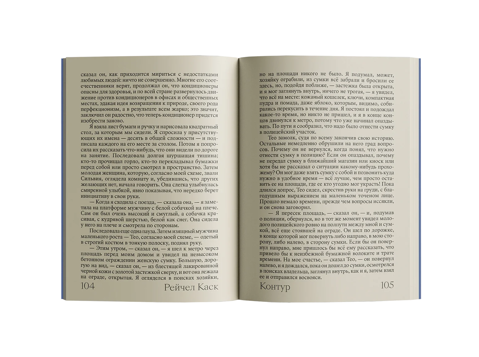 В романе «Контур» Рэйчел Каск известная писательница проводит курс по творческому письму в Афинах, где через разговоры с окружающими раскрывается её внутренний мир и опыт переживания потери. Книга сочетает тонкую психологию с размышлениями о жизни, искусстве и писательстве.