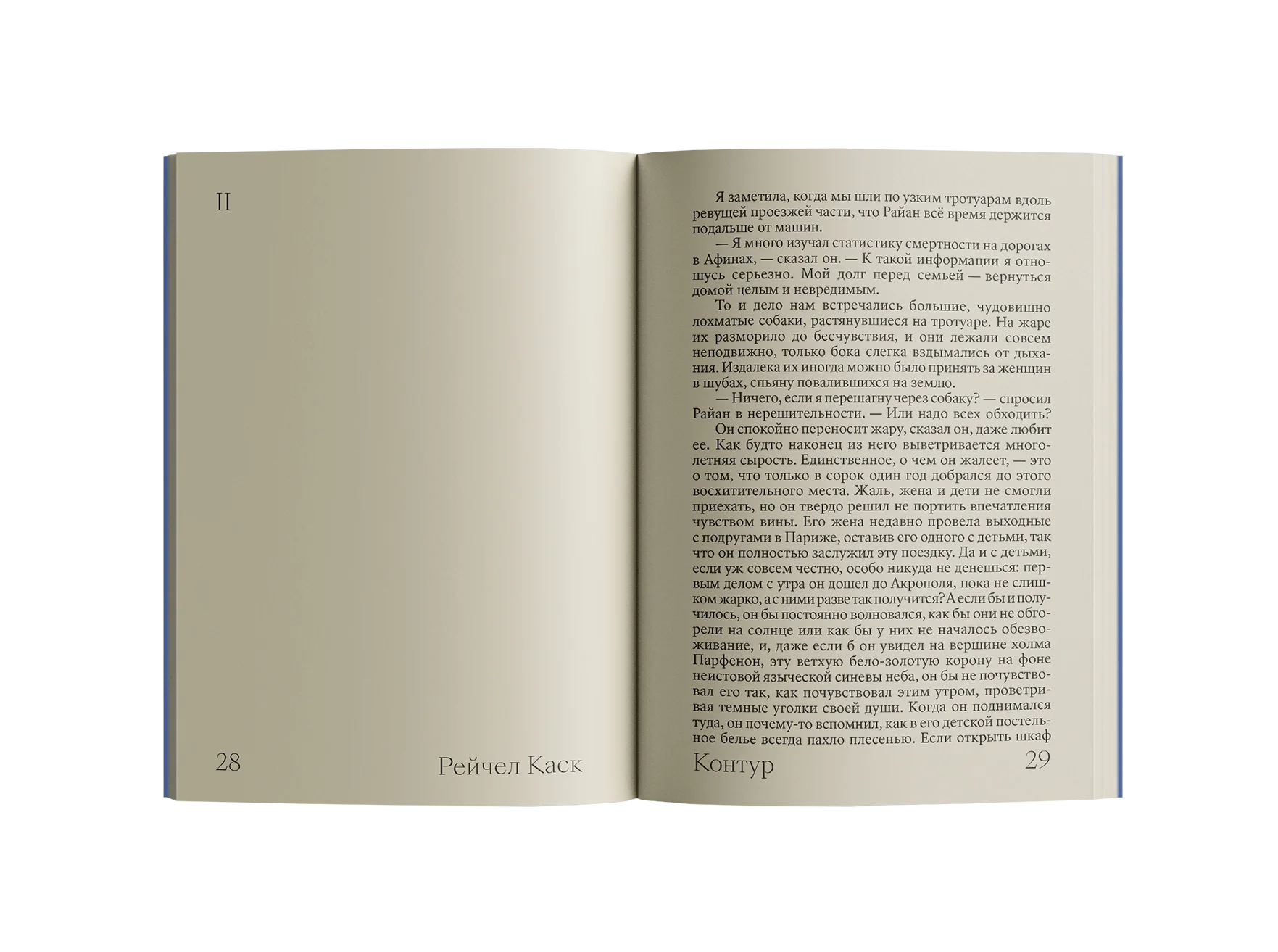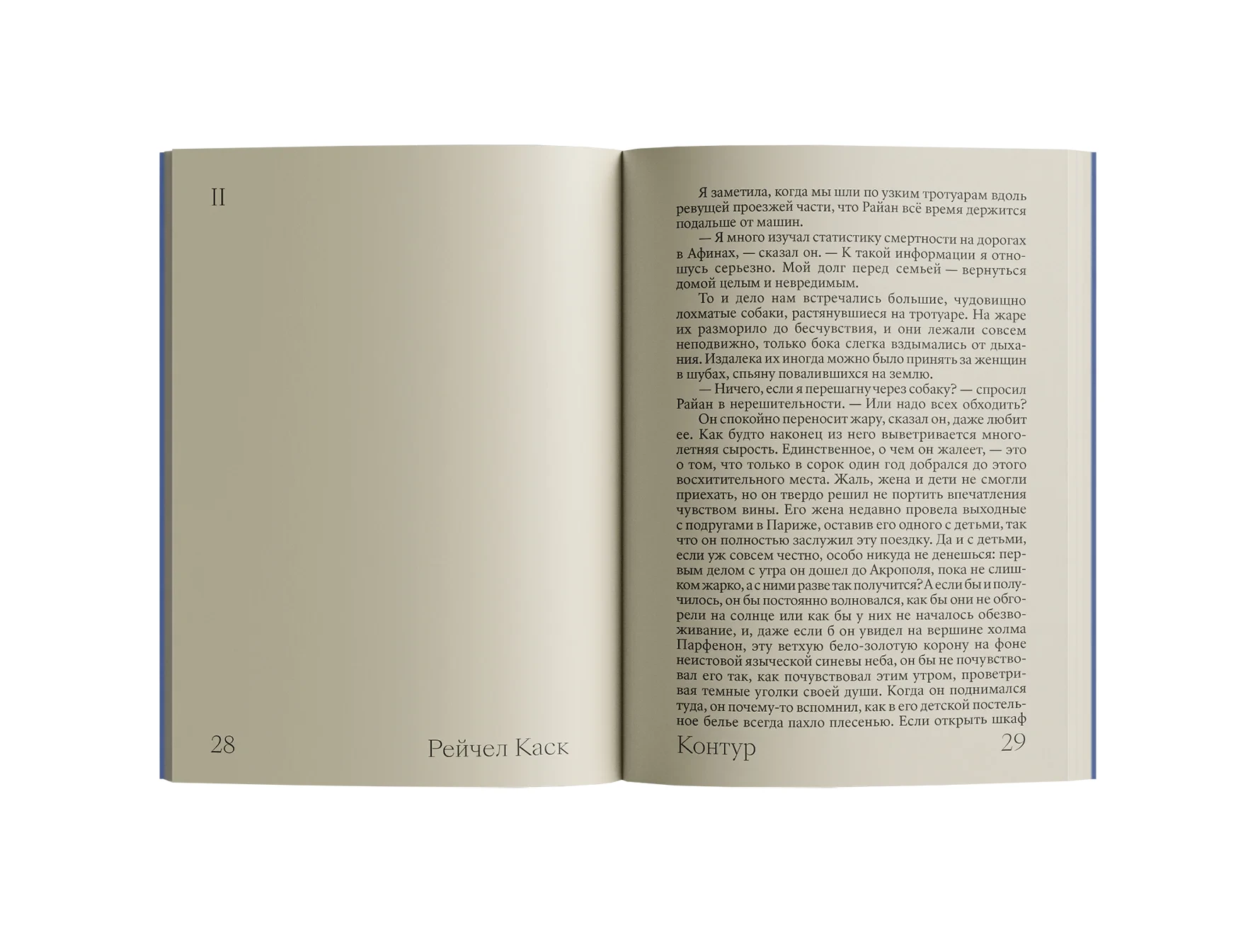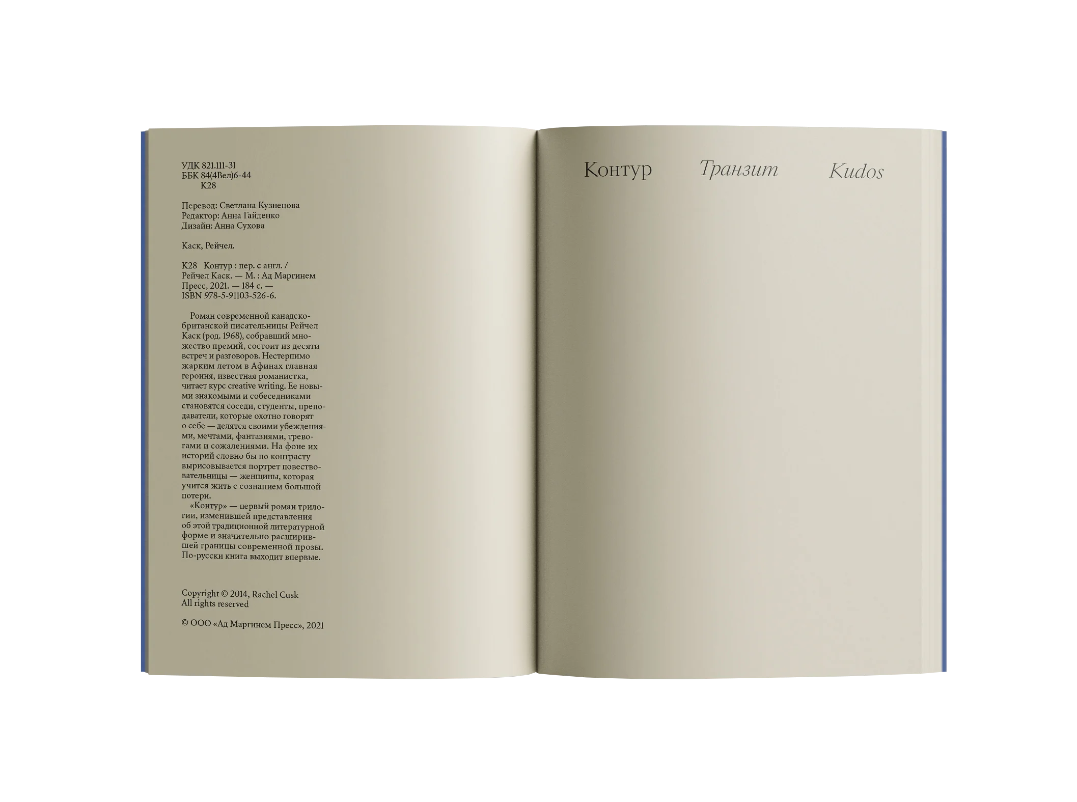 В романе «Контур» Рэйчел Каск известная писательница проводит курс по творческому письму в Афинах, где через разговоры с окружающими раскрывается её внутренний мир и опыт переживания потери. Книга сочетает тонкую психологию с размышлениями о жизни, искусстве и писательстве.