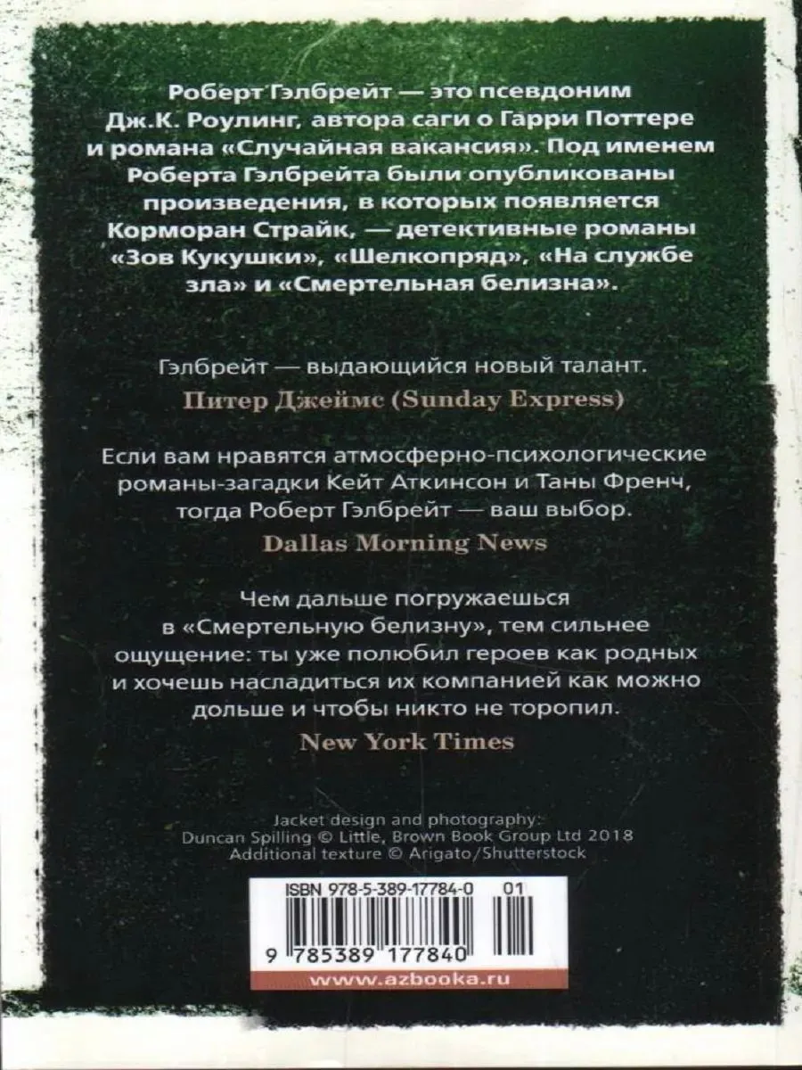 Попытки докопаться до истины поведут Страйка и его помощницу Робин Эллакотт (ставшую полноценным партнером в их агентстве) сложным извилистым путем: от окраинных клубов, где собираются противники Лондонской олимпиады, — в пропитанные интригами коридоры власти, от парламентских кабинетов — к окутанному тайной имению в глубине Оксфордшира… Но еще не известно, что будет Корморану и Робин сложнее — разгадать эту головоломную загадку или разобраться в своих чувствах…