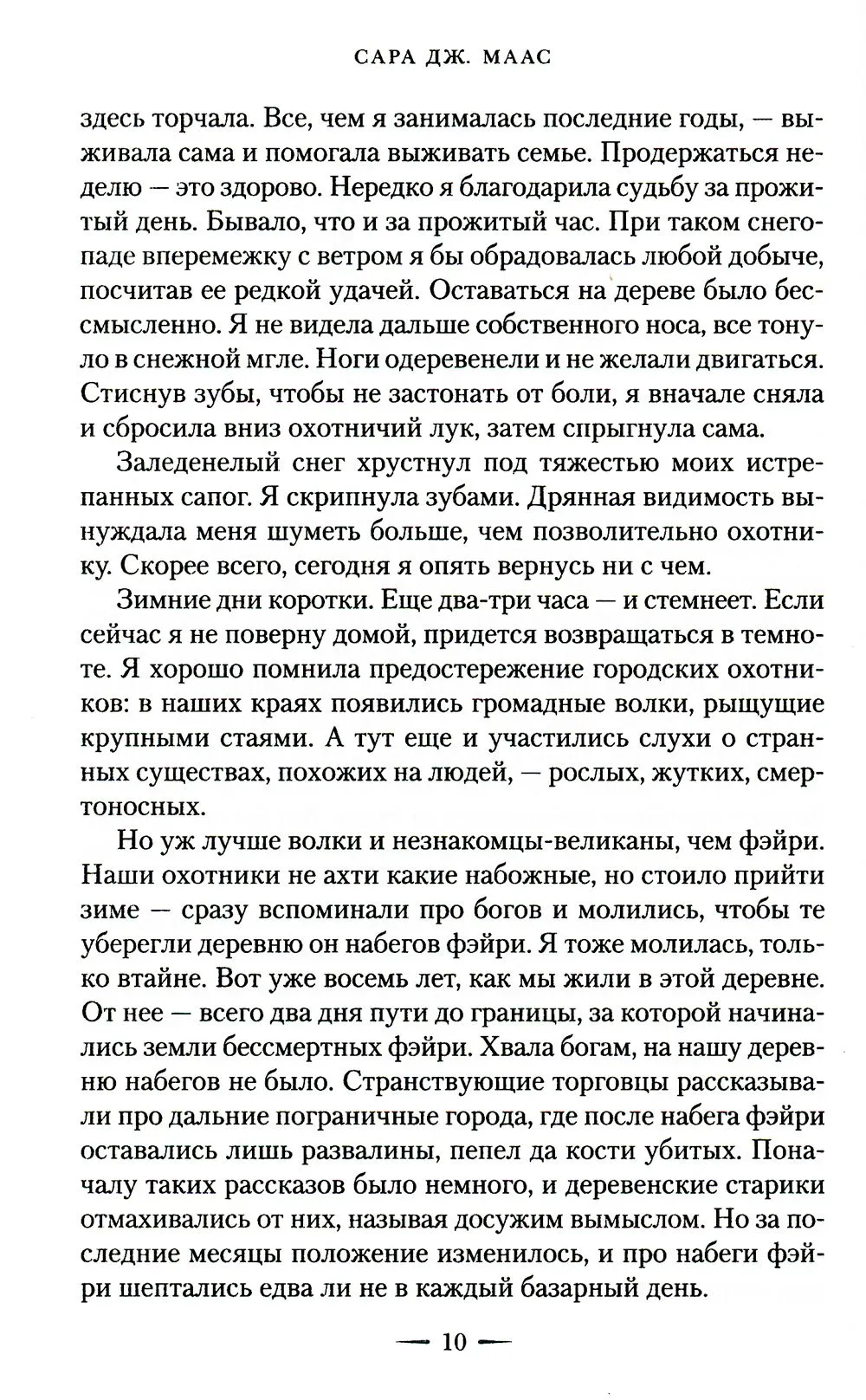 Могла ли знать девятнадцатилетняя Фейра, что огромный волк, убитый девушкой на охоте, — на самом деле преображенный фэйри. Расплата не заставила себя ждать. Она должна или заплатить жизнью, или переселиться за стену — волшебную невидимую преграду, отделяющую владения смертных от Притиании, королевства фэйри. Фейра выбирает второе.