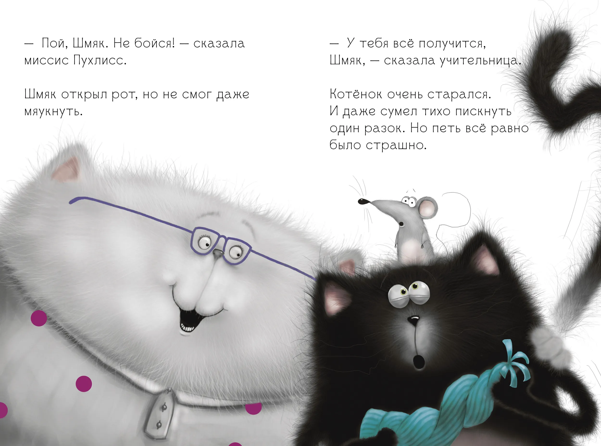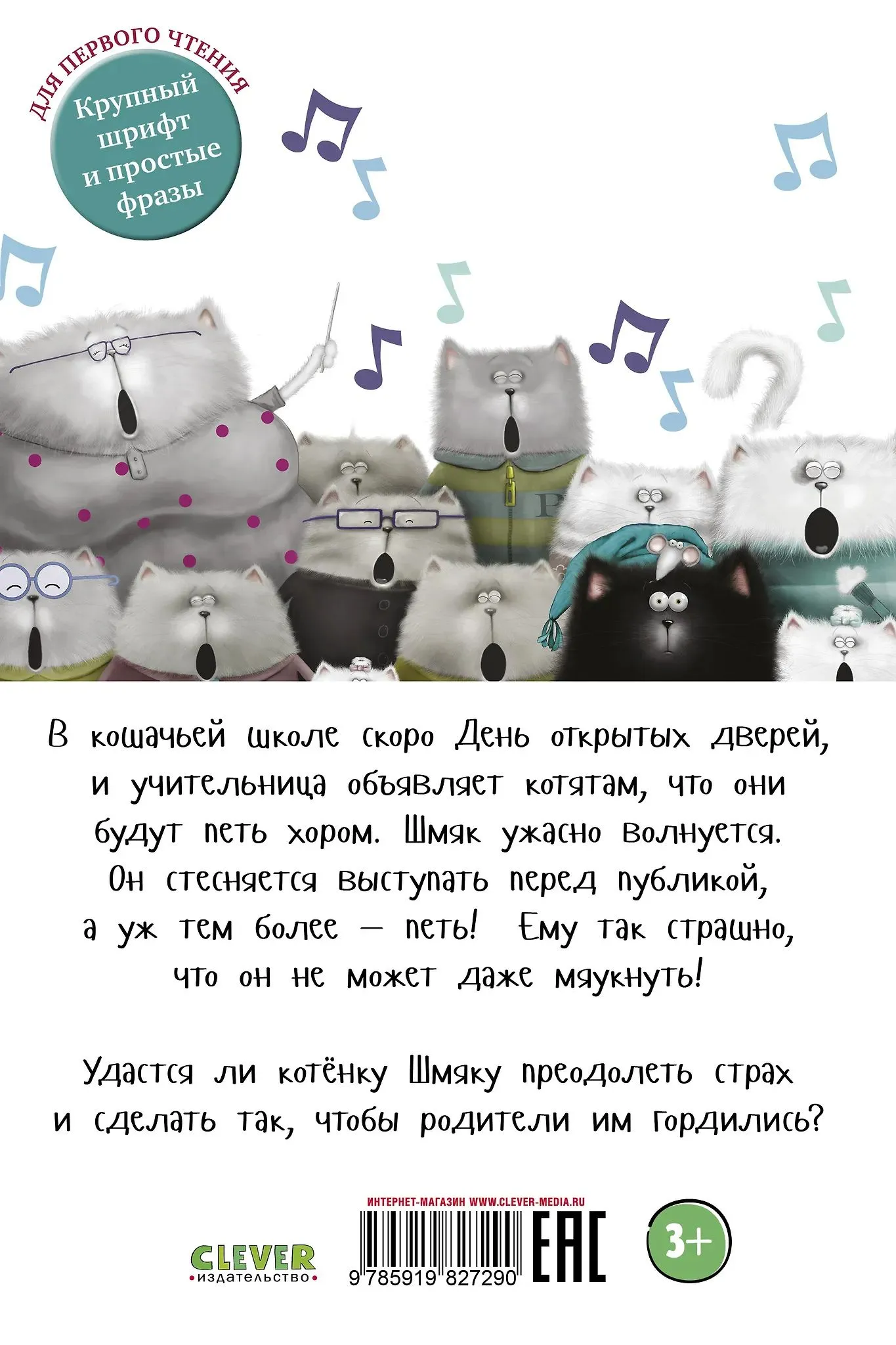 Котёнок Шмяк, пой, не бойся!. Открывая новую книгу "Котенок Шмяк, пой, не бойся!" о любимом котенке вы узнаете, что в кошачьей школе скоро День открытых дверей, и учительница объявляет котятам, о необходимости петь хором. Шмяк ужасно волнуется. Он стесняется выступать перед публикой, а уж тем более - петь! Ему так страшно, что он не может даже мяукнуть! Удастся ли котёнку Шмяку преодолеть страх и сделать так, чтобы родители им гордились, это вы узнаете, дочитав книгу до конца!