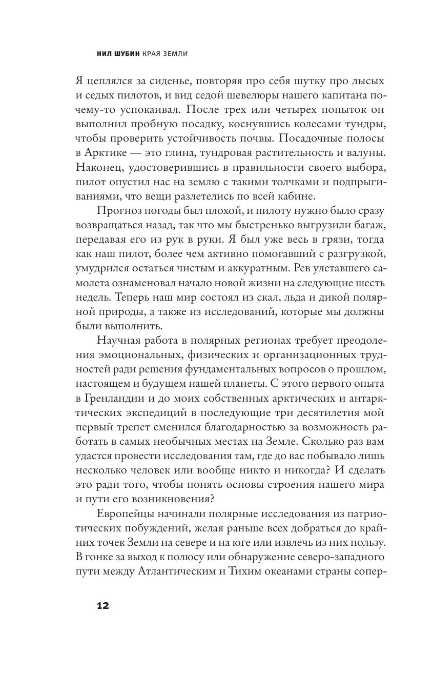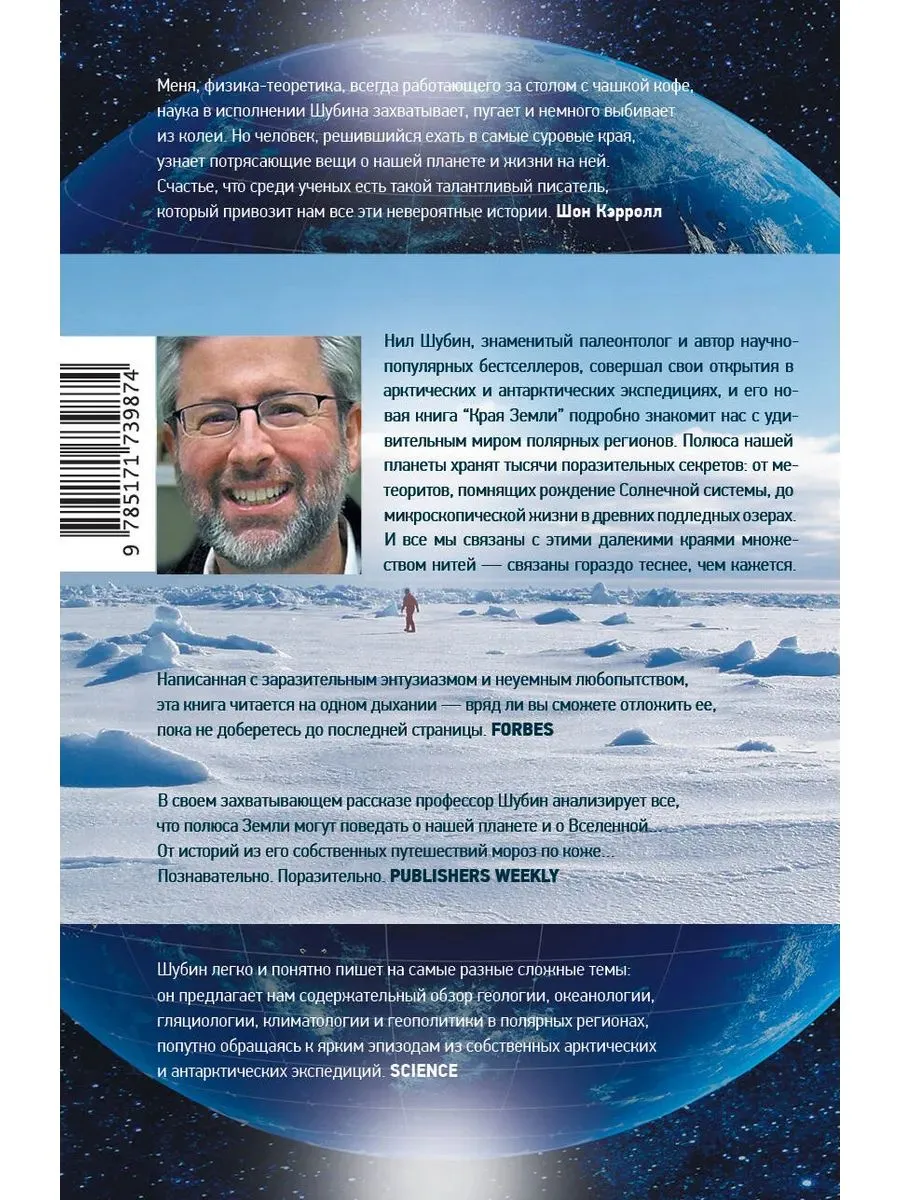 Там, где царит вечный холод, скрыты ответы на едва ли не самые важные вопросы — об эволюции жизни на Земле и о дальнейшей судьбе человечества. Нил Шубин, известный палеонтолог и популяризатор науки, множество раз бывал в Арктике и Антарктике и теперь делится открытиями, которые он и его коллеги совершили в этих загадочных местах. Он рассказывает об антарктических метеоритах, хранящих память о рождении Солнечной системы, о подледных озерах и их обитателях, о животных, способных переносить экстремально низкие температуры, и о полярниках, рисковавших собой ради науки.
