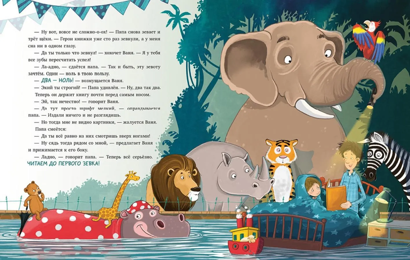 Ваня с папоий обожают читать детские сказки перед сном. В этот раз к ним в руки попала книга с необычным названием: «Кто зевнул, тот проиграл!». Вызов принят, зевательный счет: ноль — ноль! Кто же победит в соревновании? Удастся ли героям книги для малышей не уснуть и дочитать книжку до конца?