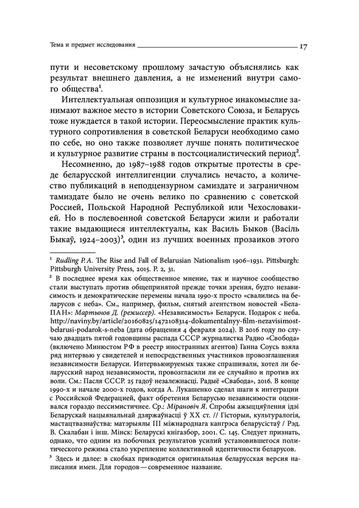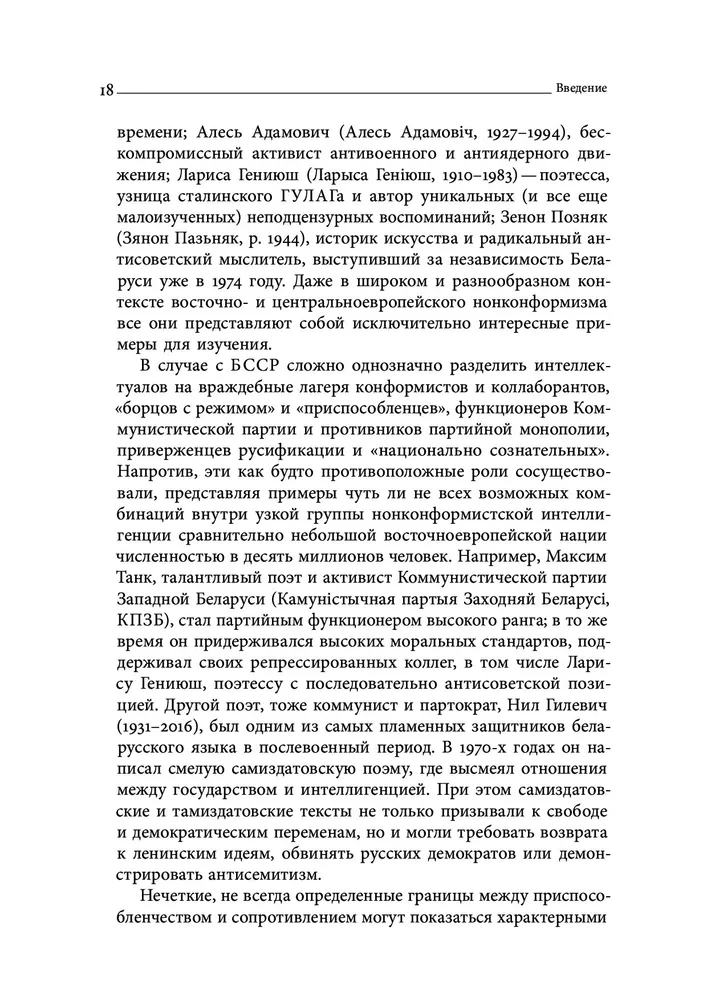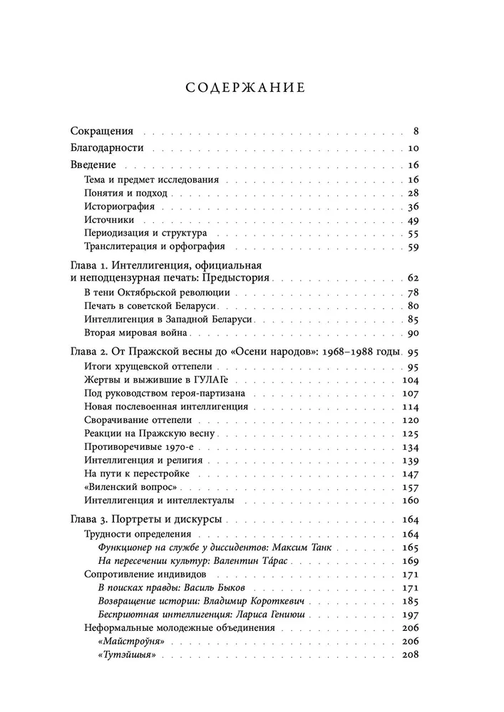 Охватывая широкий спектр интеллектуальных дискурсов, автор акцентирует внимание прежде всего на феномене и практиках нонконформизма и культурного инакомыслия, а не на собственно политических формах сопротивления. Идейное наследие и деятельность беларусских интеллектуалов впервые в историографии рассматриваются в наднациональной перспективе: Т. Островская прослеживает их связи как с русской и украинской интеллигенцией, так и с беларусским эмигрантским сообществом.