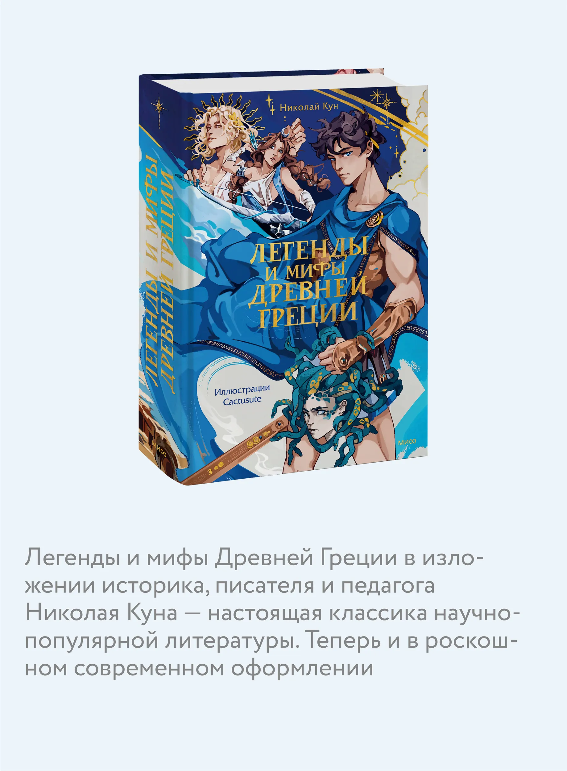 Труд выдающегося ученого Николая Альбертовича Куна вышел в 1914 году и с тех пор десятки раз переиздавался. Кун сделал, казалось бы, невозможное: взял аутентичные источники — поэмы Гесиода и Гомера, трагедии Еврипида, — и пересказал их так увлекательно и легко, что книгой зачитывалось не одно поколение детей и взрослых, а блестяще стилизованные истории запоминались на всю жизнь.