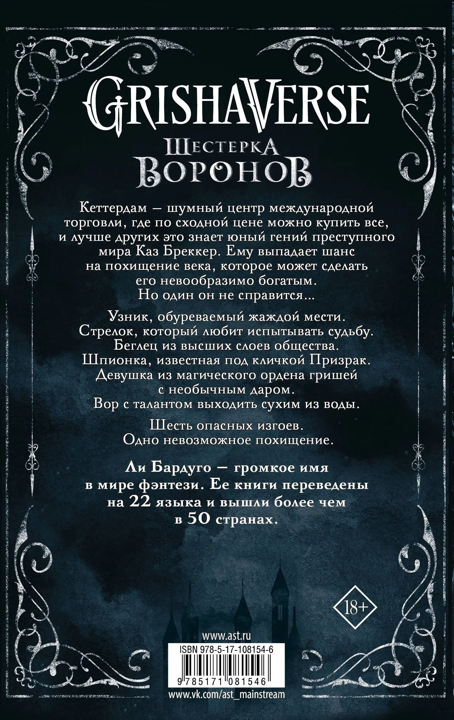 На кону — баснословные деньги и… секрет, который может уничтожить одни народы и возвеличить другие. Какие именно — теперь зависит от Каза и его команды. Шестерых "воронов", которым нечего терять кроме надежды. Это дело объединит их. Лучшего стрелка банды Отбросов и новичка, который не умеет держать пистолет в руках. Соблазнительную чародейку, умеющую с помощью магии взрывать сердца, и безжалостного охотника на таких, как она. Юную гимнастку из самого известного публичного дома во всей Керчии и Каза Бреккера, способного без тени сомнения вырвать глаз предателю. Им предстоит один путь, но у каждого своя цель…