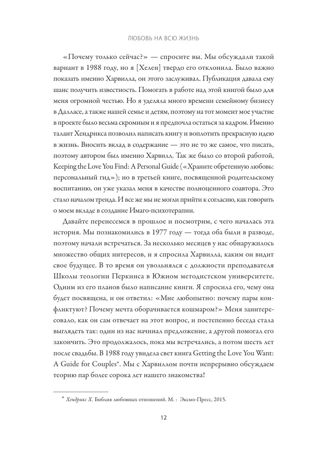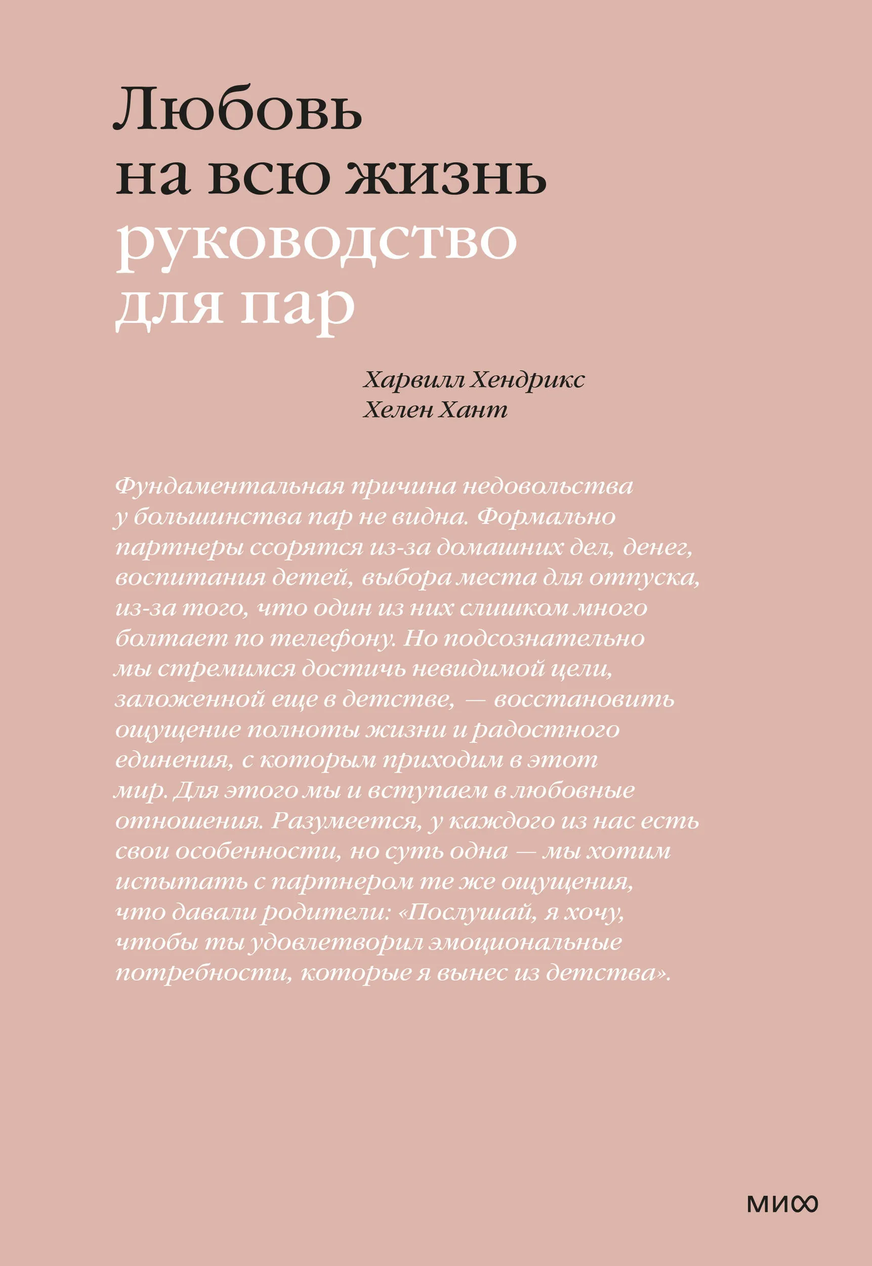 В результате многолетних исследований они пришли к выводу, что на отношения с партнерами сильнейшее влияние оказывает опыт, полученный в детстве. Мы выбираем партнеров бессознательно, под воздействием образов из прошлого, запечатленных в глубинах нашей памяти. Поэтому в наших партнерах, как правило, сочетаются негативные и позитивные черты тех людей, которые нас воспитывали. Любовь — это стремление обрести гармонию, которую мы ощущали, находясь в материнской утробе. Сталкиваясь с реальностью, мы теряем ощущение безопасности, с которым приходим в этот мир. Каждый раз, когда родитель отдаляется от своего ребенка, не замечая, например, его плача, ребенок переживает болезненный опыт разрыва связи с близким человеком, а в любви мы пытаемся вновь эту связь обрести. Мы воспроизводим негативный опыт прошлого, желая на этот раз "выйти победителем", исцелить свою детскую травму.