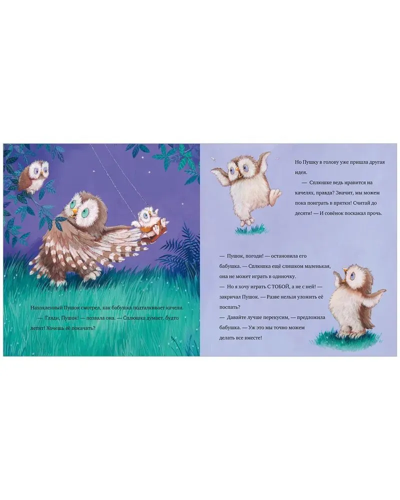 Книга "Любви хватит на двоих" расскажет о том, что приходится переживать детям, когда в их семье появляется кто-то еще младше. Так случилось с совенком Пушком: однажды бабушка представила ему двоюродную сестренку, маленькую Сплюшку. Пушок ужасно переживает: с сестренкой толком не поговорить и не поиграть, уж очень она маленькая, а бабушка ее ужасно балует, и Пушку теперь достается только половина печенья. Как бабушка убедит малыша, что в ее сердце хватит любви на двоих? Дочитайте эту трогательную историю до конца.