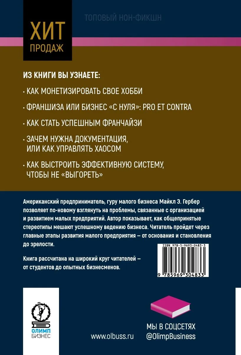 Американский предприниматель, гуру малого бизнеса Майкл Гербер позволяет по-новому взглянуть на проблемы, связанные с организацией и развитием малых предприятий. Автор показывает, как общепринятые стереотипы мешают успешному ведению бизнеса. Читатель пройдет через главные этапы развития малого предприятия — от основания и становления до зрелости.
