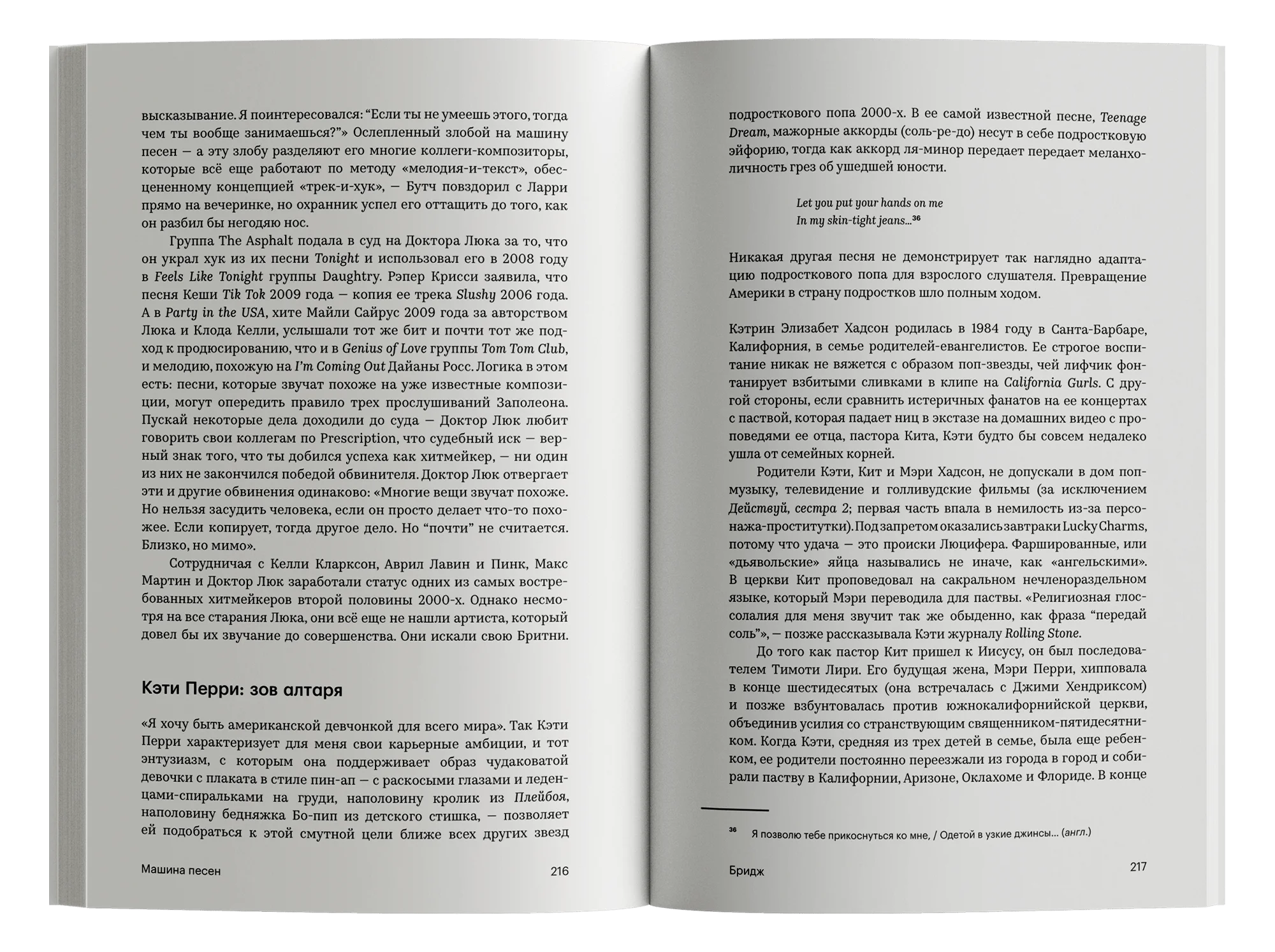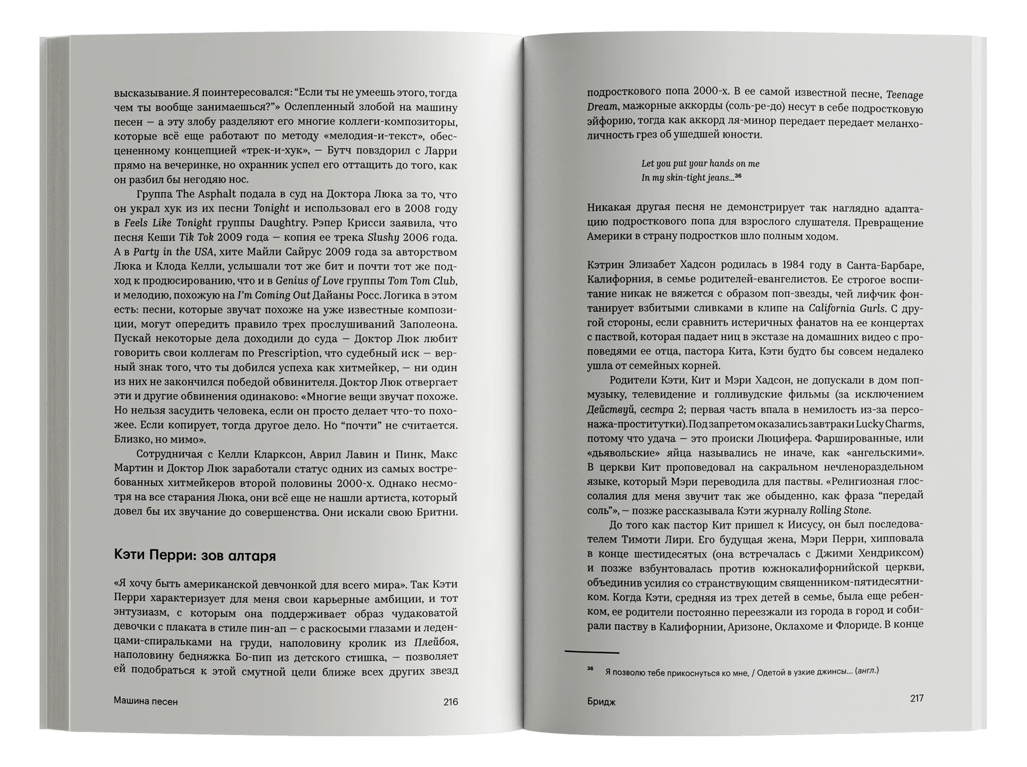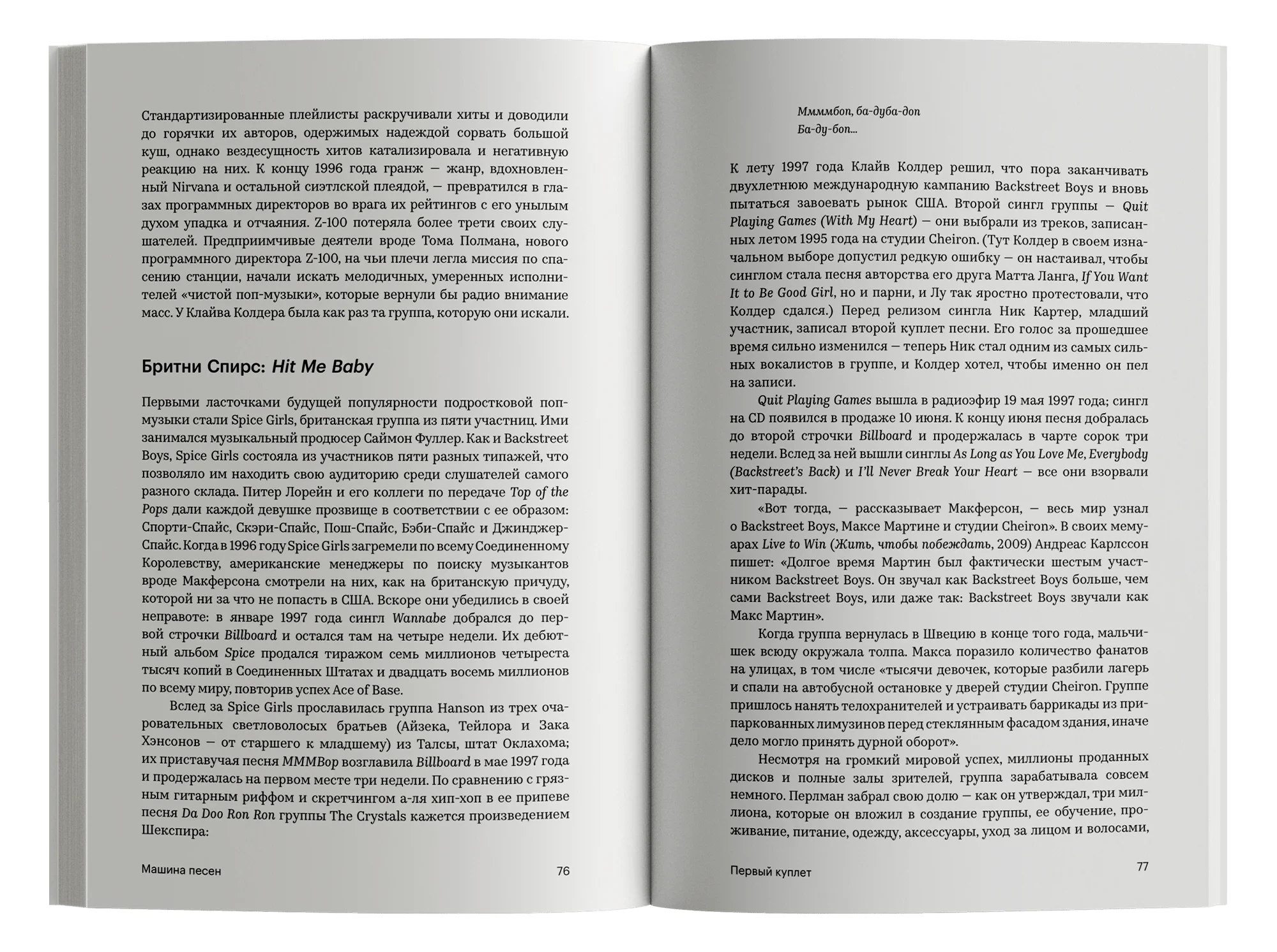 В своей книге "Машина песен. Внутри фабрики хитов" Джон Сибрук, американский культуролог и журналист, исследует феномен популярной музыки, ее влияние на современное общество, а также подробно разбирает "анатомию" хита и приходит к интересному выводу - оказывается, в таком творческом деле, как создание песни, совсем не важна оригинальность. Все подчиняется строгой логике, "математике мелодии", а стоит за этим целая команда профессионалов - продюсеры, топ-лайнеры, битмейкеры и текстовики. Изучая историю появления шлягеров, Сибрук подводит нас к другой, не менее поразительной мысли: так было почти всегда.