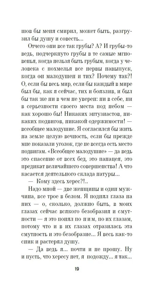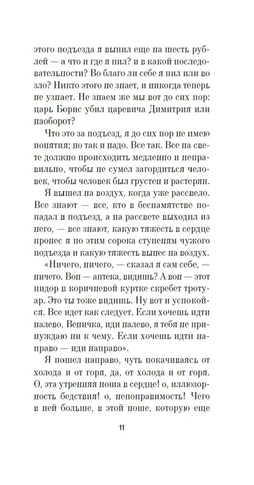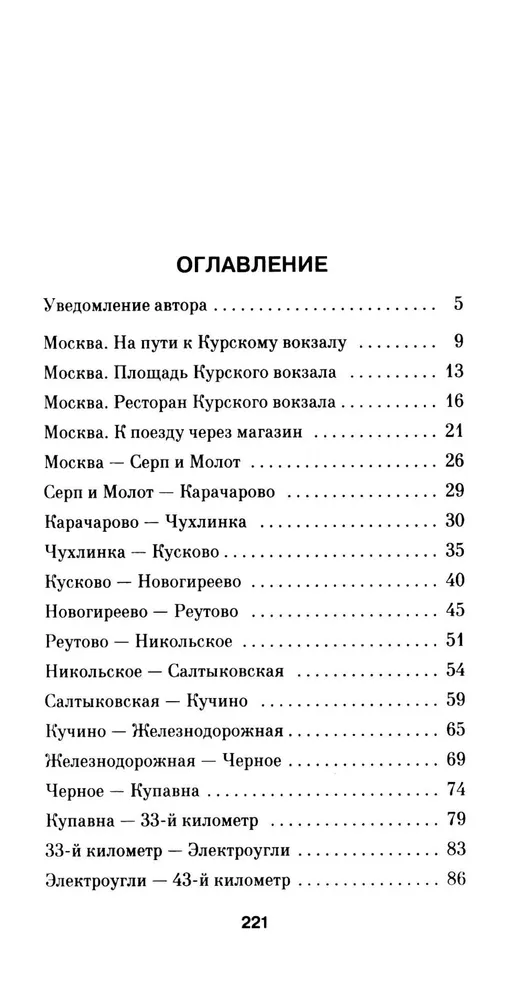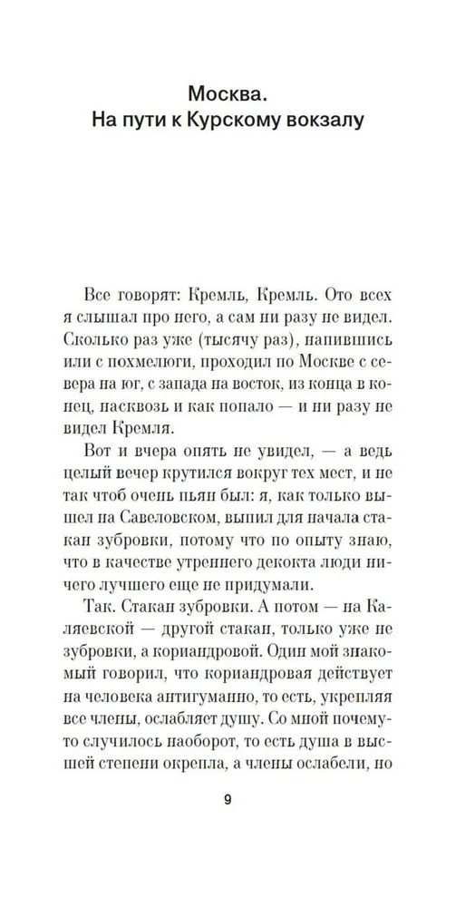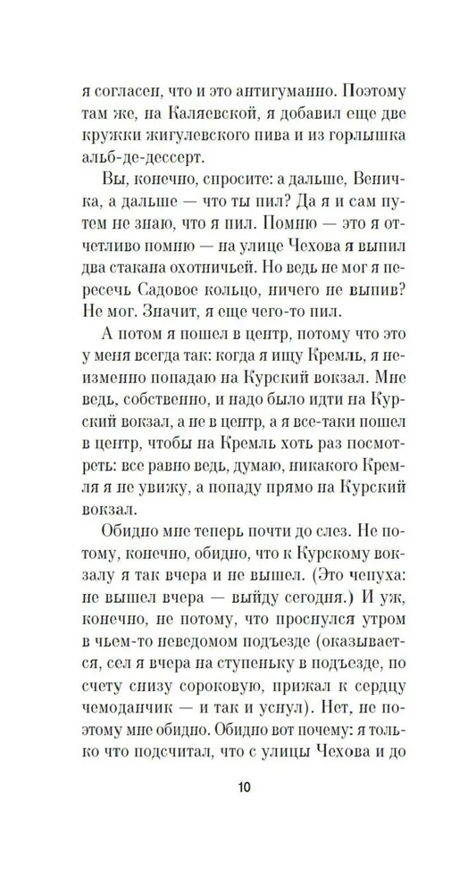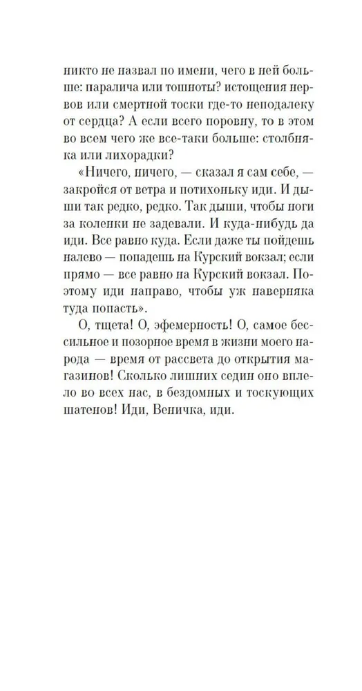 «Москва — Петушки» — культовая поэма о путешествии пьянствующего философа Венички, которое было, а может быть, и нет. Достоверно известно только одно: Кремль Веничка так и не увидел, а на Курский вокзал попал. Ведь Веничку ждут в Петушках девушка с глазами белого цвета и самый кроткий из всех младенцев, знающий букву «ю». Герой Ерофеева — библейский мученик, погрязший в хаосе советской действительности, но стремящийся к высшей жизни. На этом пути его сопровождают ангелы и алкогольные напитки разной степени крепости. Достигнет ли Веничка Петушков? Пусть это останется тайной.
