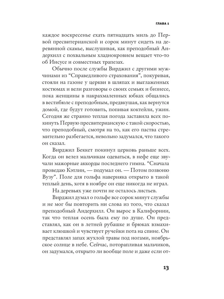 Ноябрьское воскресенье 1957 года. СССР запускает “Спутник-2” с собакой Лайкой на борту, и весь мир следит за новостями. Супруги Беккеты из американского Ньюарка тоже в курсе последних событий. Но именно в этот день их с виду обычная жизнь незаметно начинает трещать по швам. Муж, Вирджил, идет с сыновьям в церковь, потом отправляется играть в гольф с коллегами. Странности начинаются, когда Кэтлин, некогда подававшая большие надежды теннисистка, а теперь мать и домохозяйка, отказывается идти в церковь. Она достает старый купальник и отправляется в бассейн, из которого до самого вечера отказывается выходить.