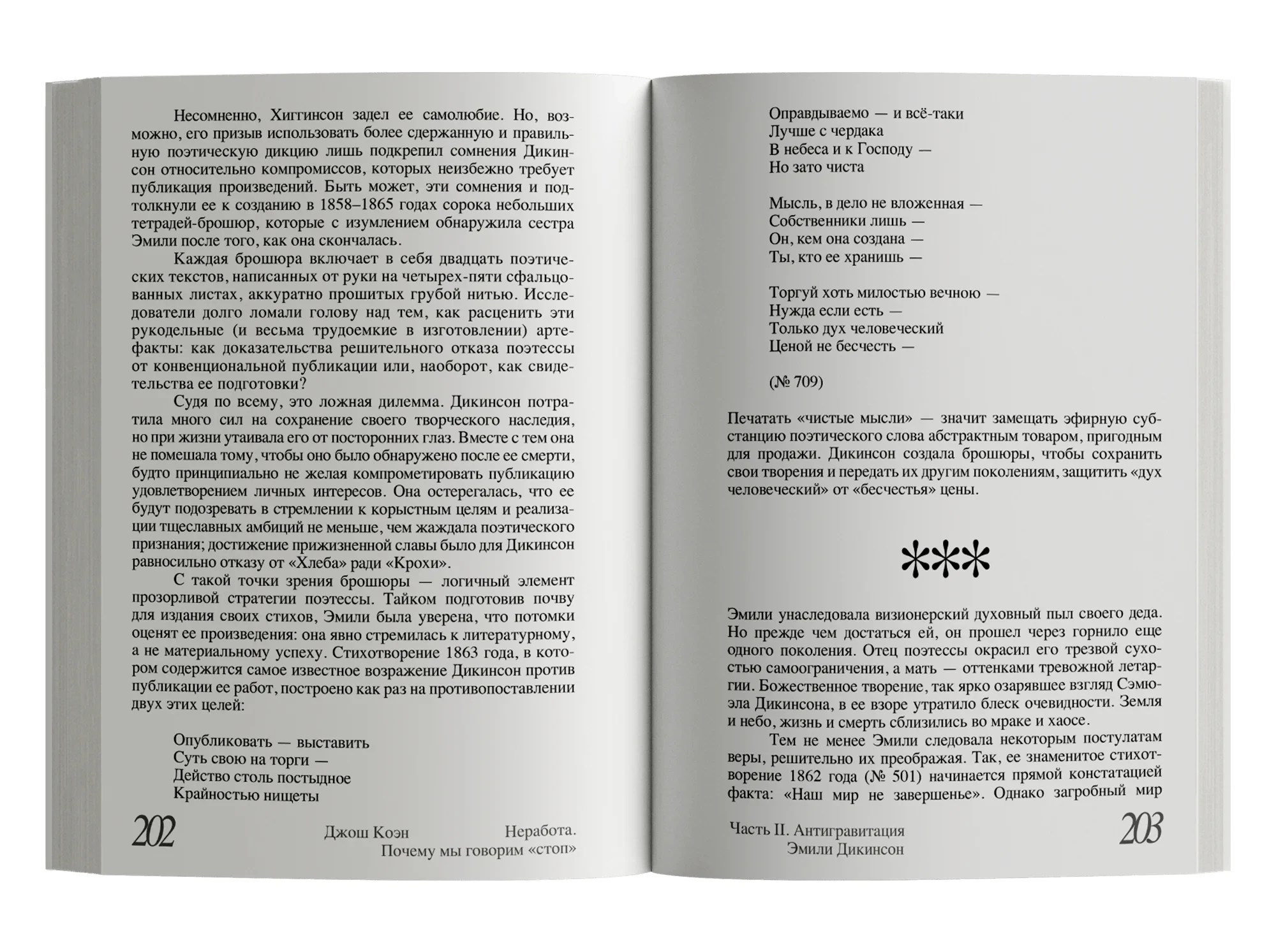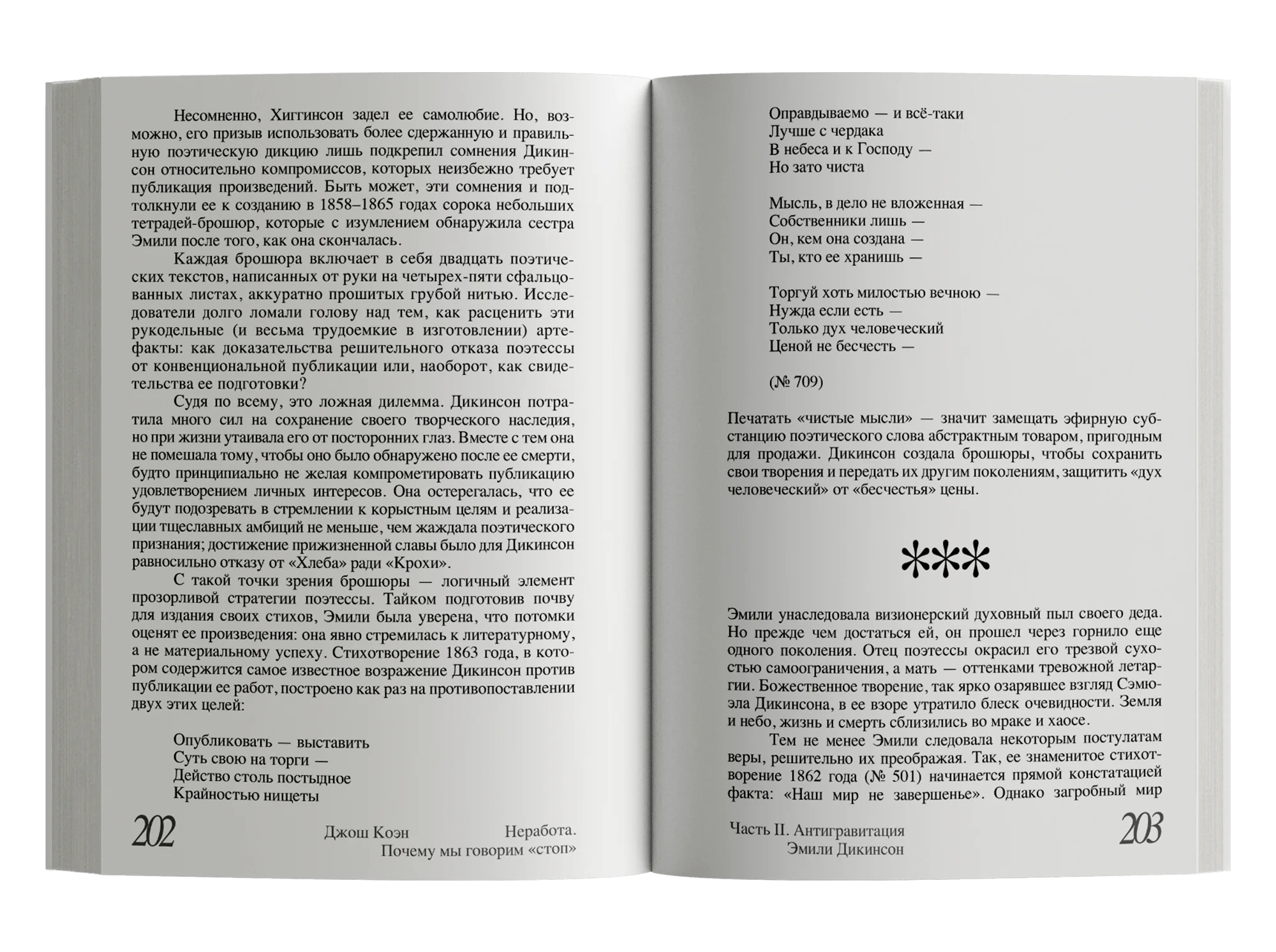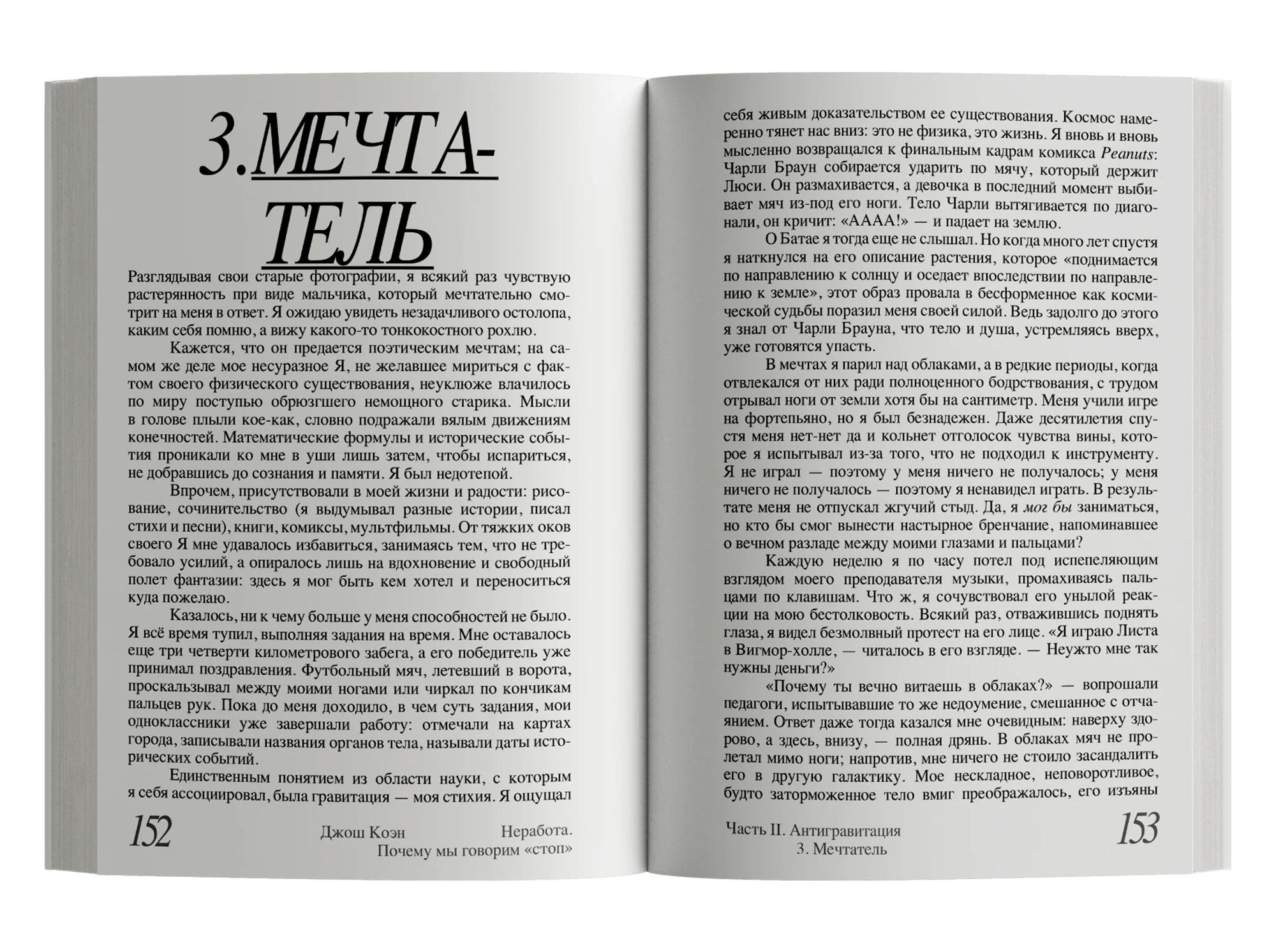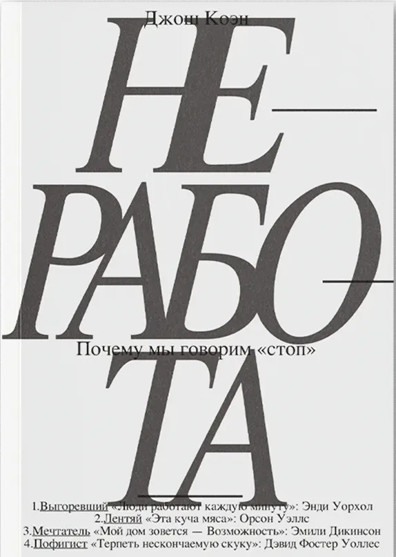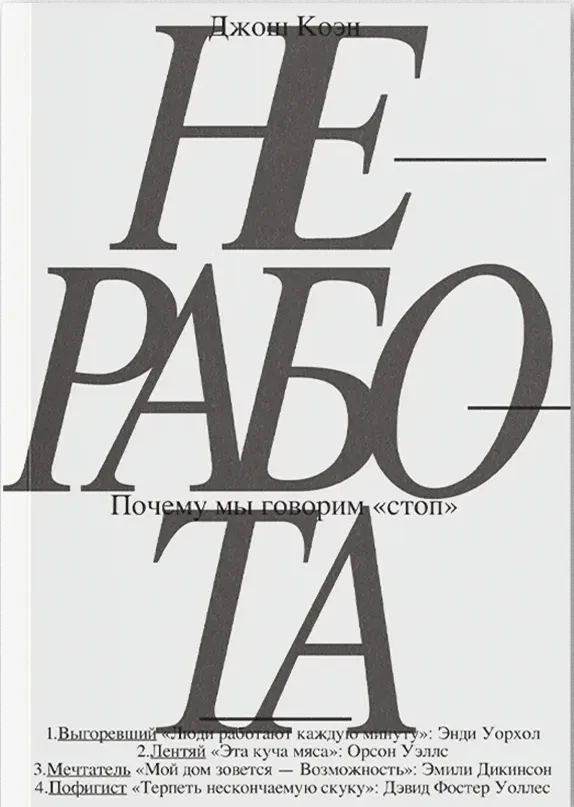 Как быть с потребностью в «неработе», которую невозможно реализовать в полной мере, но и отрицать, задавливать в себе, крайне опасно? Автор ищет подступы к ответу на этот, должно быть, неразрешимый вопрос в собственном жизненном опыте, в историях своих пациентов и в судьбах нескольких выдающихся людей, столкнувшихся с конфликтом между работой и «неработой» вплотную, — Эмили Дикинсон, Орсона Уэллса, Энди Уорхола и Дэвида Фостера Уоллеса. Из автобиографических очерков, заметок психоаналитика и тонких наблюдений о природе творчества складывается этот текст, продиктованный стремлением Джоша Коэна разобраться в себе и способный помочь в этом нам.