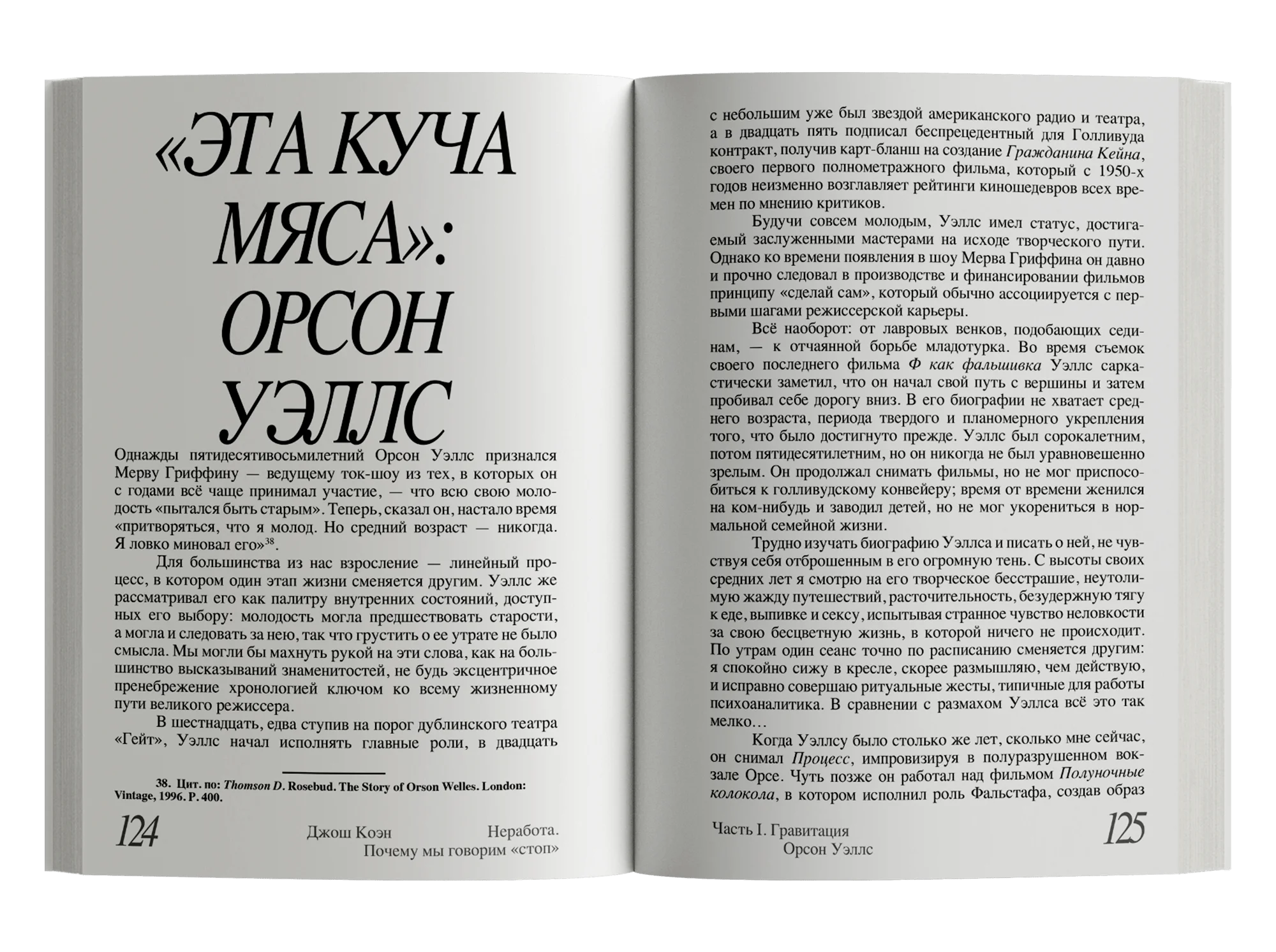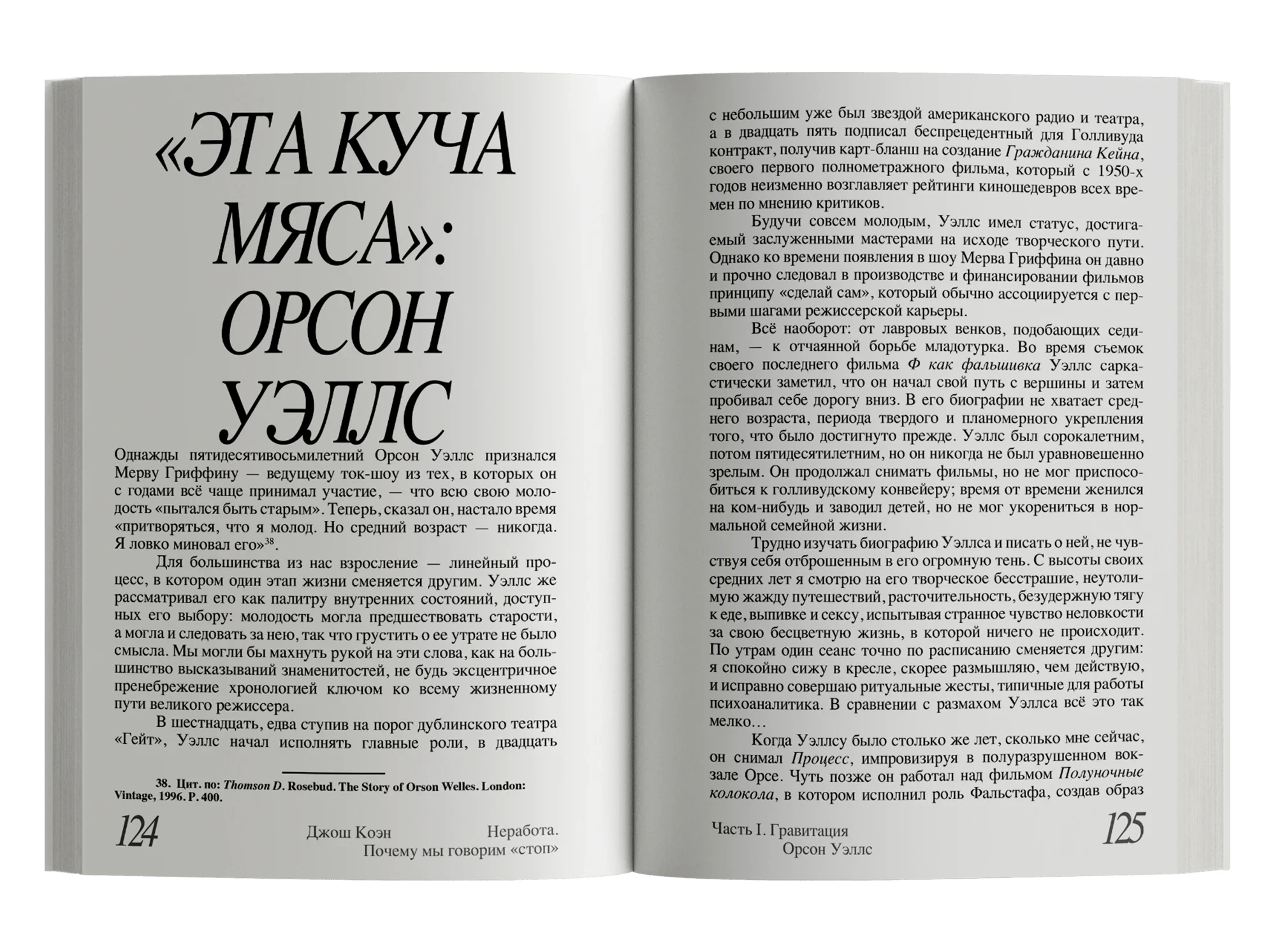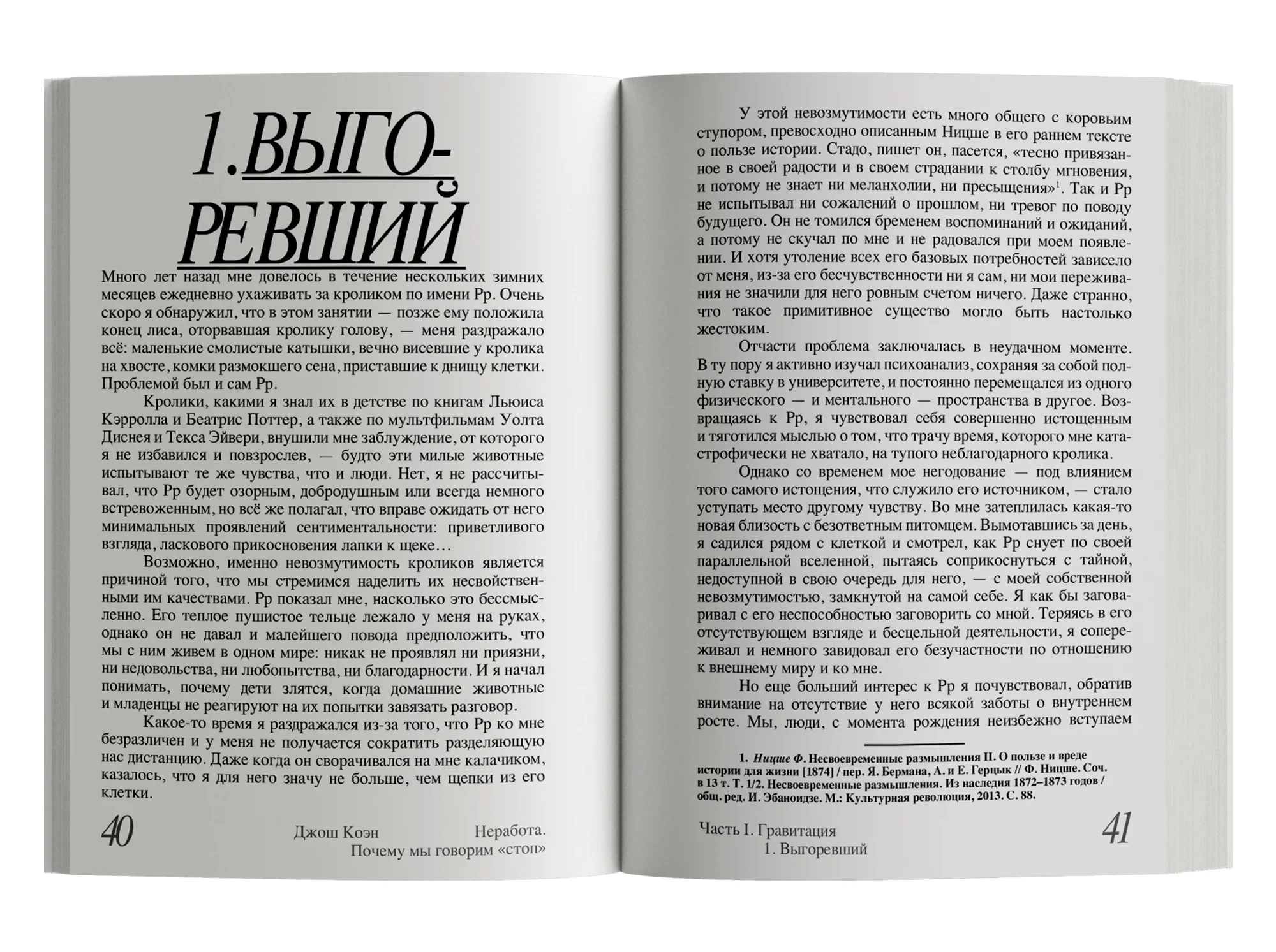 Как быть с потребностью в «неработе», которую невозможно реализовать в полной мере, но и отрицать, задавливать в себе, крайне опасно? Автор ищет подступы к ответу на этот, должно быть, неразрешимый вопрос в собственном жизненном опыте, в историях своих пациентов и в судьбах нескольких выдающихся людей, столкнувшихся с конфликтом между работой и «неработой» вплотную, — Эмили Дикинсон, Орсона Уэллса, Энди Уорхола и Дэвида Фостера Уоллеса. Из автобиографических очерков, заметок психоаналитика и тонких наблюдений о природе творчества складывается этот текст, продиктованный стремлением Джоша Коэна разобраться в себе и способный помочь в этом нам.