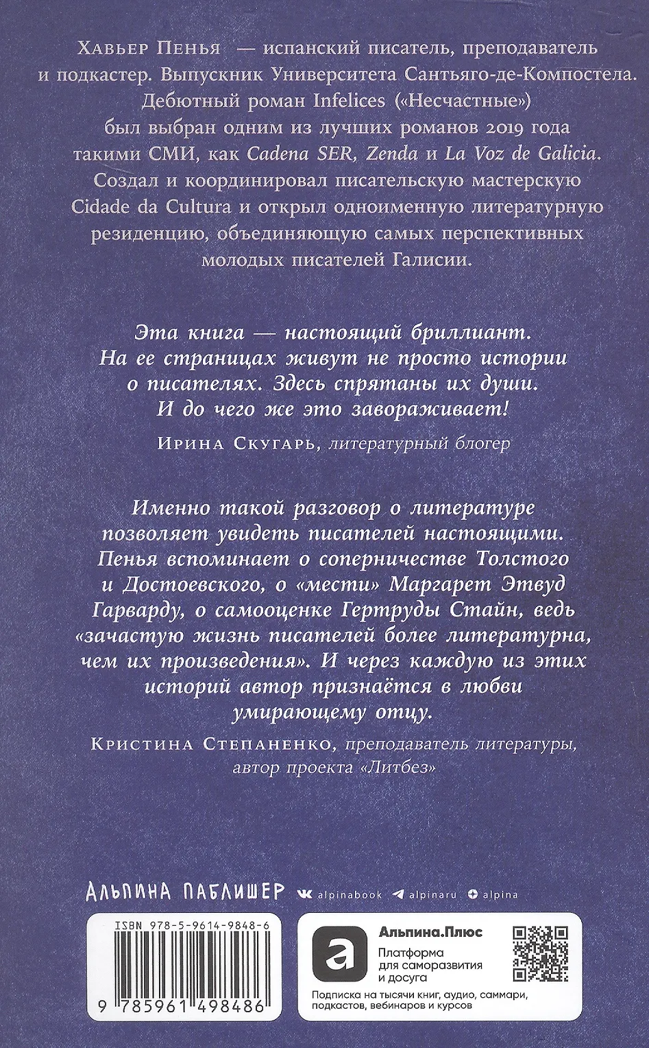 Хавьер Пенья учит находить утешение в литературе даже в самые тяжелые времена: он доказывает, что ради счастливых мгновений чтения стоит жить, а придуманные истории обладают огромной силой и подлинной красотой.