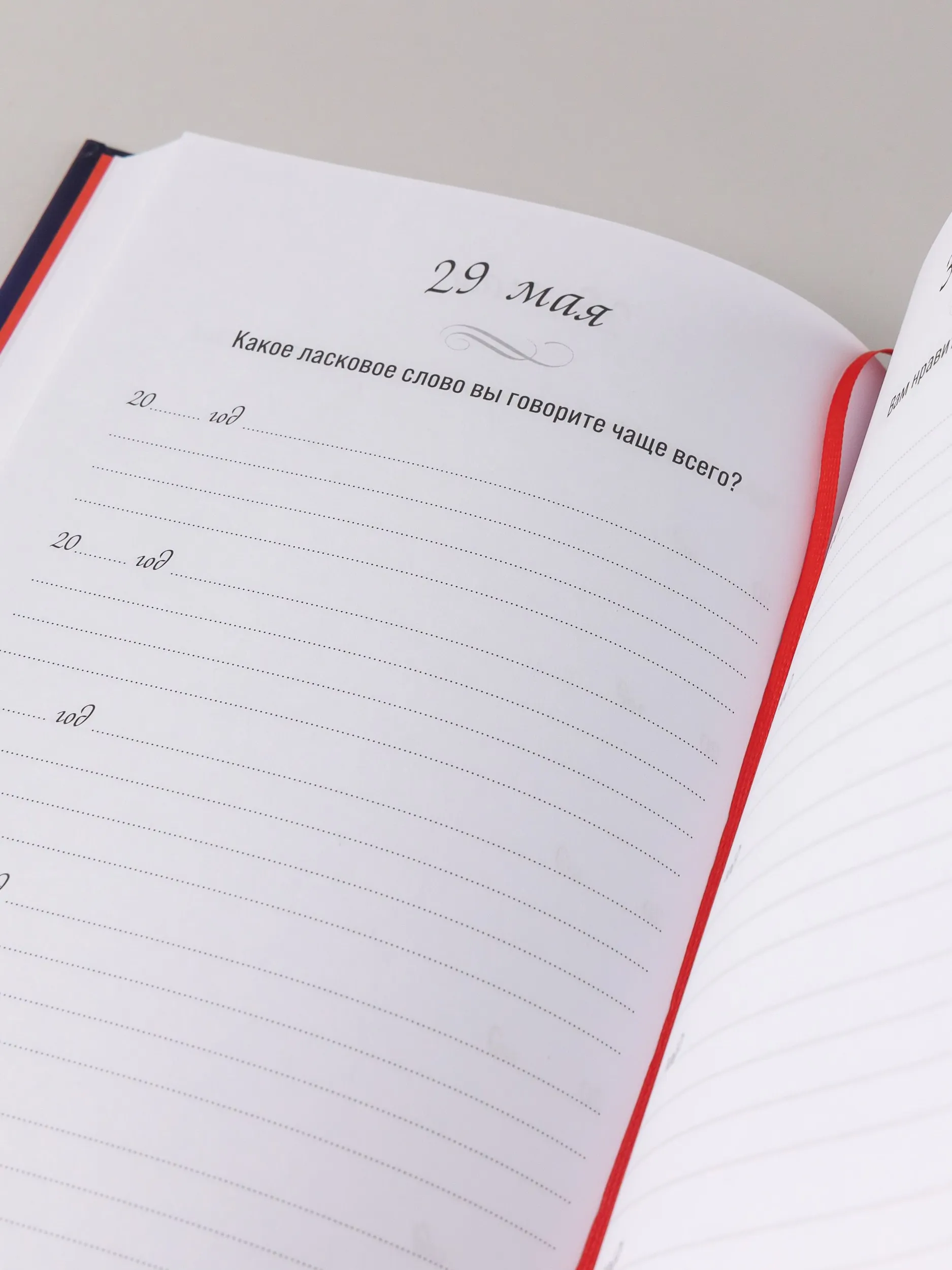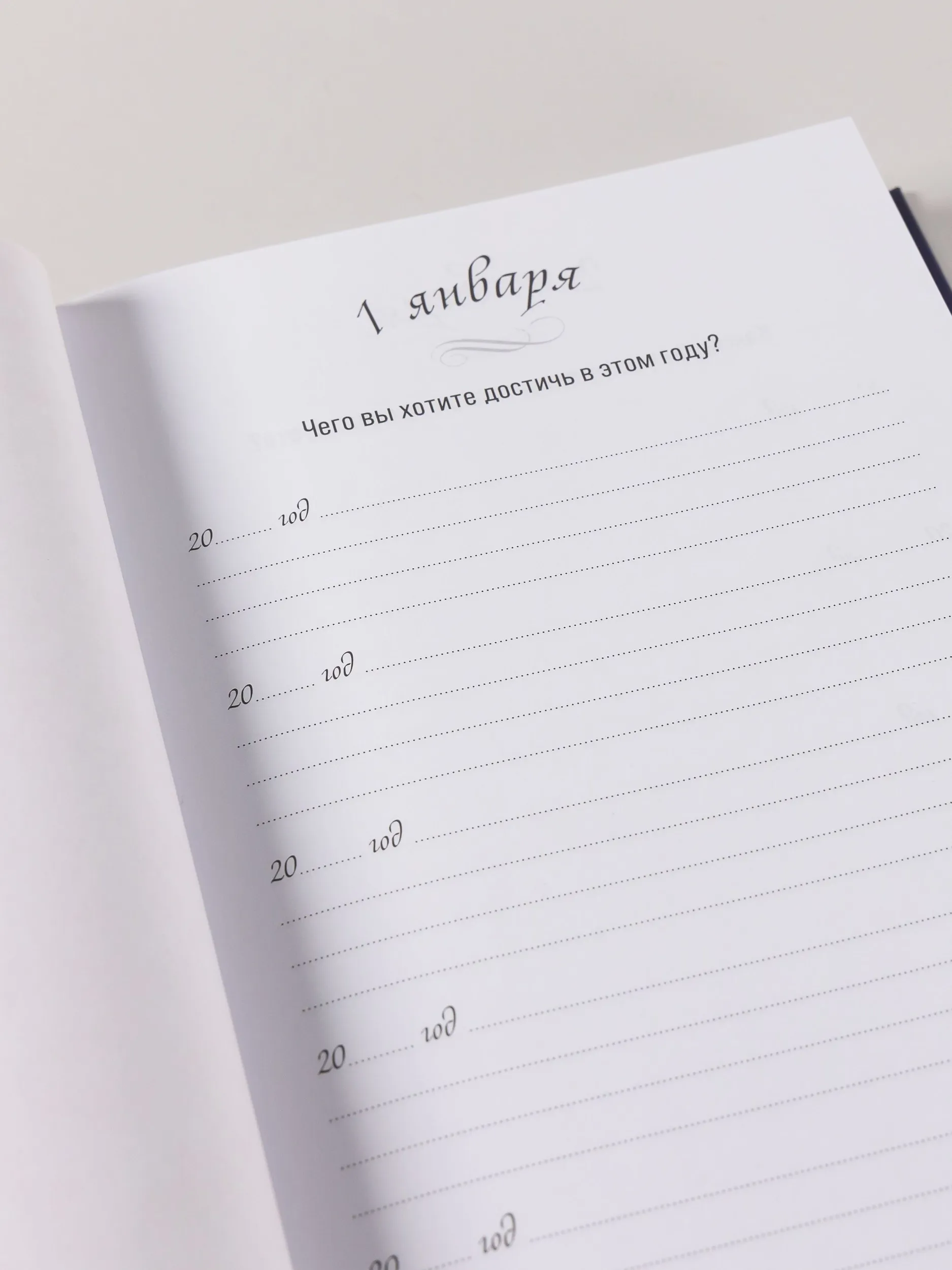 На каждой странице этого пятибука вы найдете вопрос, отвечая на который каждый год в один и тот же день, вы сможете проанализировать изменения своего состояния и мыслей. Здесь собраны разные вопросы — от прозаических до тех, которые касаются смысла жизни.